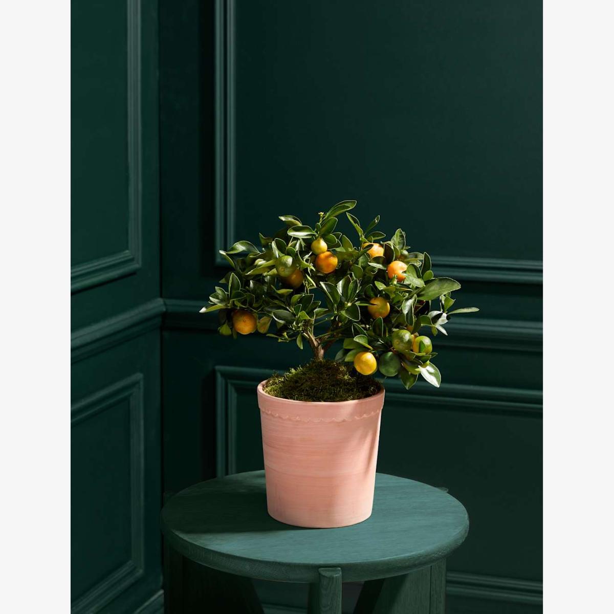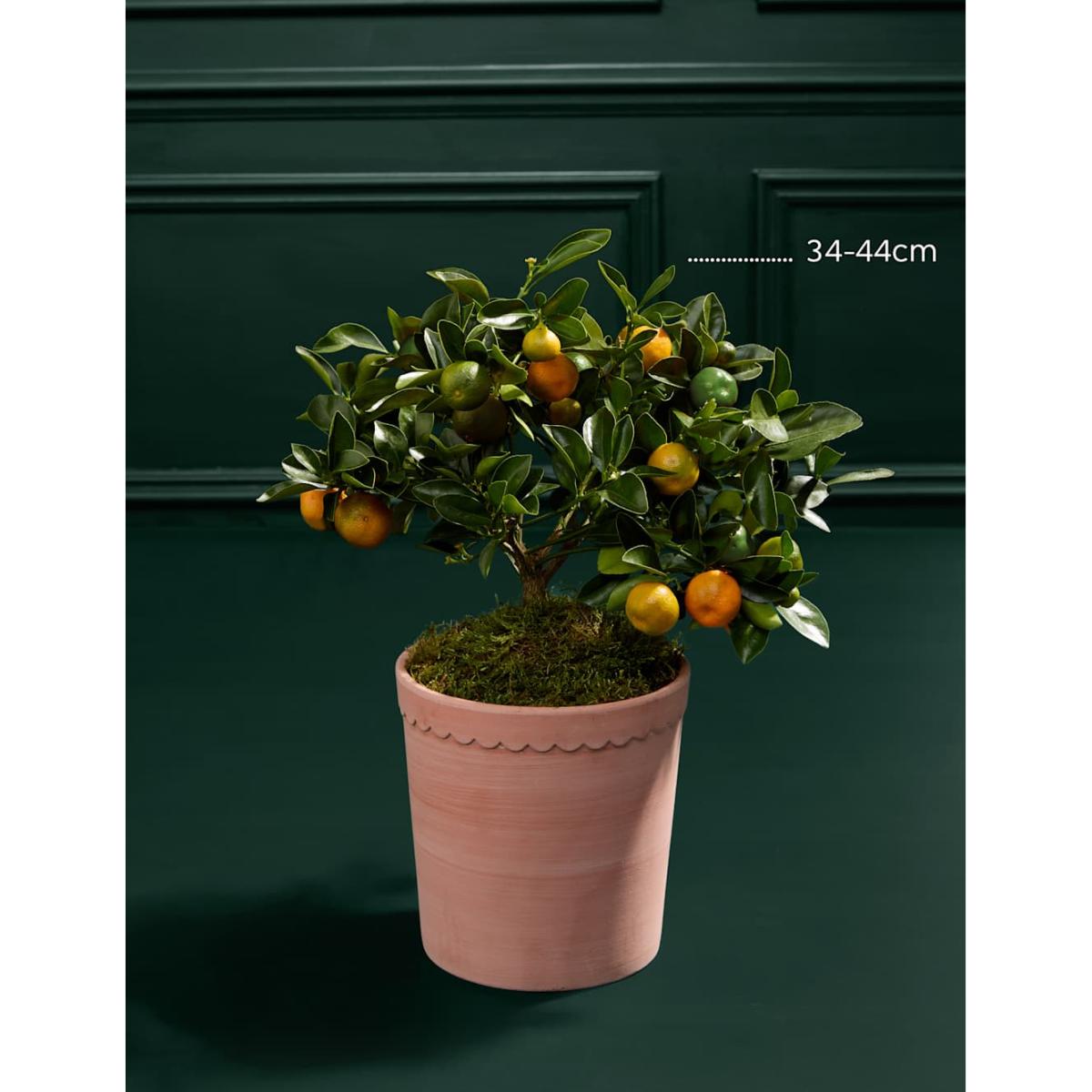 Bring a touch of the Mediterranean to you home with this citrus tree in a Portuguese scallop terracotta pot. This vibrant citrus plant, flourishing with lush green leaves, adds a fresh burst of life to your indoor space. Whether placed on a mantle, a side table, or as a centerpiece. Colours may vary slightly throughout the season.