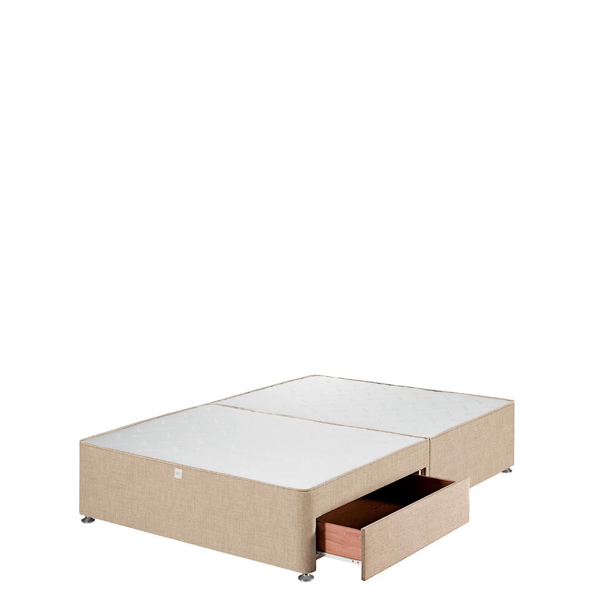 Your bedroom should be a sanctuary and divan beds with storage are the perfect way to keep the space clean and clutter-free. Our divan bed has two drawers for the perfect storage solution. Robustly constructed using high quality, sustainable wood, you can be sure of this base’s endurance, while chrome-look feet add a degree of sleekness to this practical design. Offering a sturdy surface, this firm top divan bed translates into a more solid feel to your mattress.