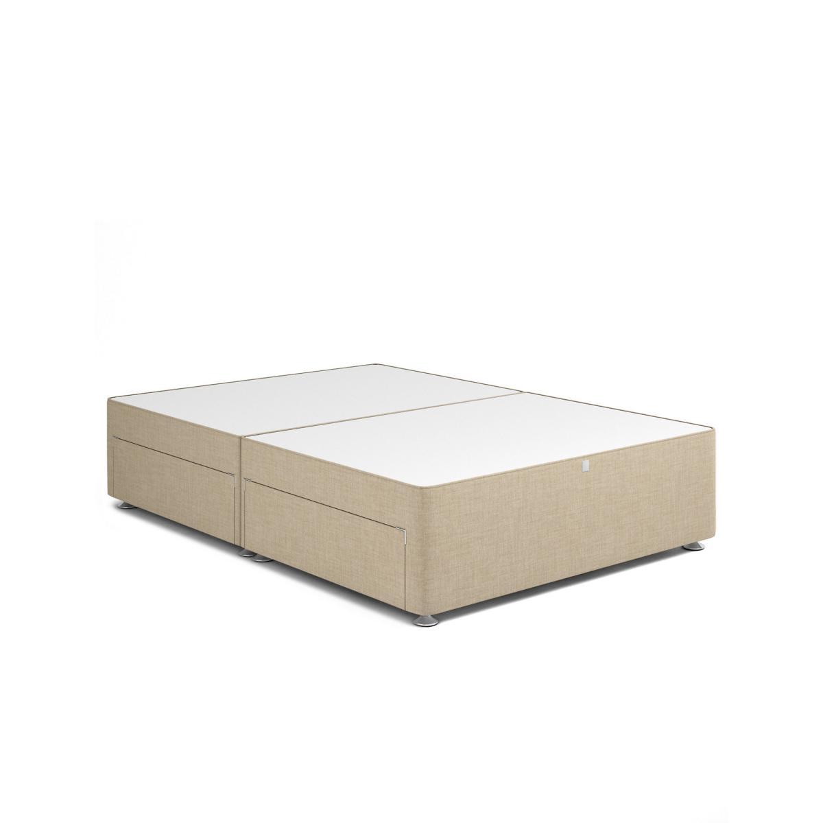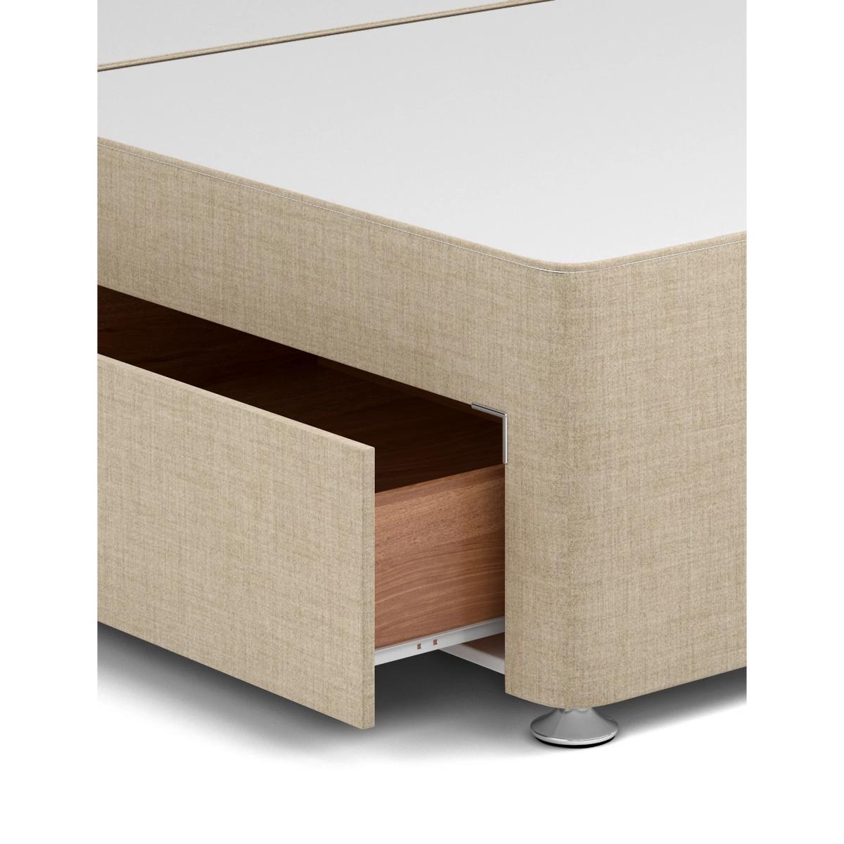 Your bedroom should be a sanctuary and divan beds with storage are the perfect way to keep the space clean and clutter-free. Our divan bed has two drawers for the perfect storage solution. Robustly constructed using high quality, sustainable wood, you can be sure of this base’s endurance, while chrome-look feet add a degree of sleekness to this practical design. Offering a sturdy surface, this firm top divan bed translates into a more solid feel to your mattress.