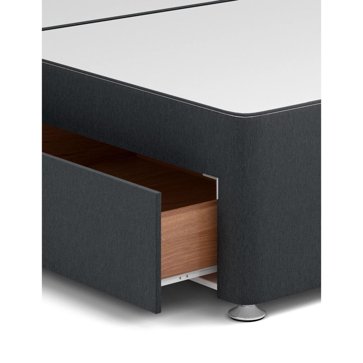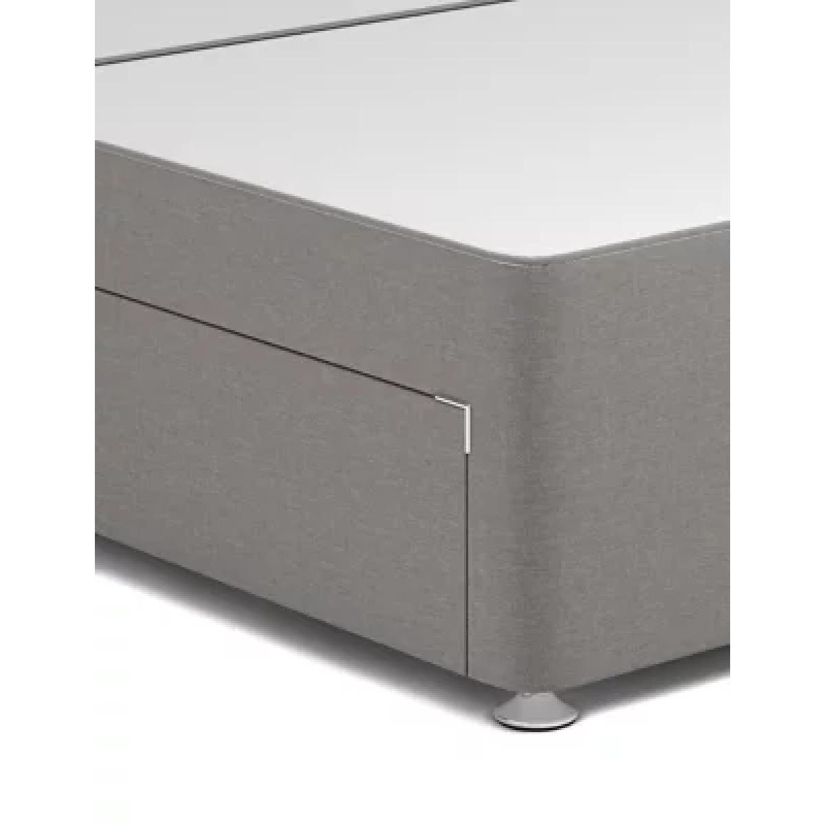 This four drawer divan offers an excellent base for your mattress whilst maximising the use of space. This sprung divan features four large drawers for ample storage and provides a supportive base, created from responsibly sourced materials. High-quality timber makes the frame wonderfully durable, with stylish silver feet adding a contemporary touch to this classic divan. All our divans are designed to work with any of our mattresses for a great night’s sleep, allowing you to create the combination that works best for you.