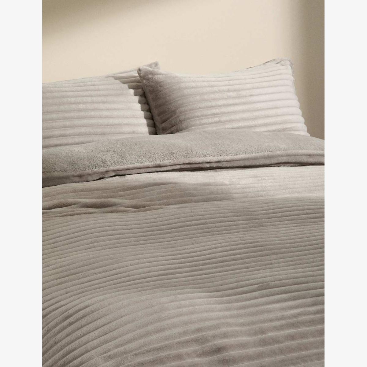 Wrap up in the cloud-like comfort of our fleece bedding. This snuggly set has a carved striped texture that's both smart and inviting, plus a plain, fluffy reverse. Button fastenings provide the finish.