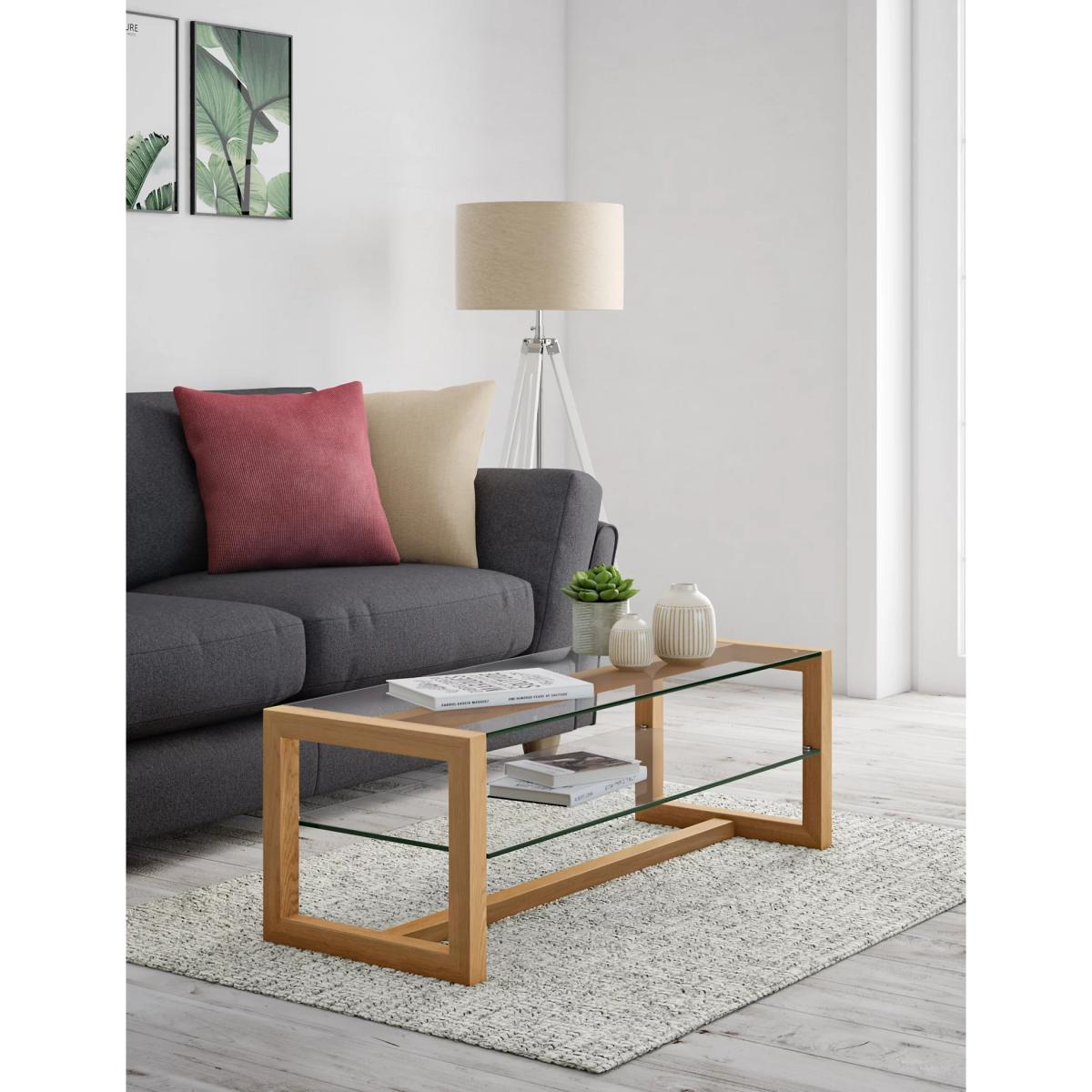 I really like this coffee table for its clean, minimalist look and warm oak finish, which adds a touch of natural appeal to any space. It works especially well in Scandi-inspired interiors or contemporary settings where simplicity and functionality are key. To style it effectively, consider pairing it with neutral-toned accessories or a small cluster of plants for a touch of freshness. Practical tips include keeping the surface uncluttered for a sleek look and using trays or baskets underneath for hidden storage, which helps maintain organisation while highlighting its streamlined design. This table is versatile and sturdy, making it a great centrepiece for both casual lounging areas and more polished living rooms.