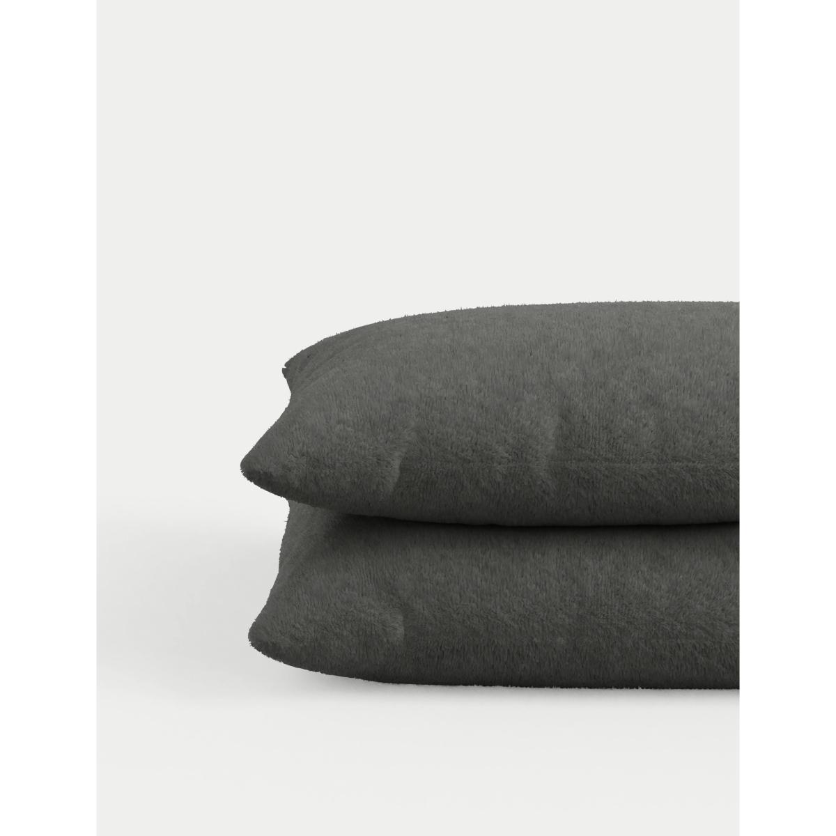 M&S Collection 2 Pack Teddy Fleece Pillowcases - Forest Green, Chocolate,Burgundy,Grey,Neutral,White,Charcoal,Biscuit,Forest Green