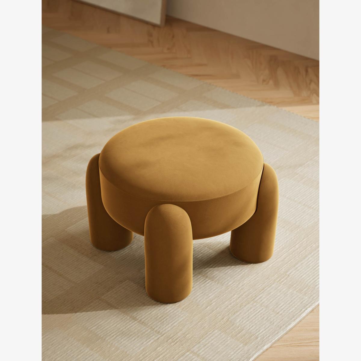 I love this footstool for its bold, contemporary design and versatile colour palette. The Ochre and Aubergine tones make it a striking statement piece that can bring warmth and depth to both neutral and colourful interiors. It works particularly well in modern or eclectic settings, where its playful shape can complement a variety of textures and patterns. Practical styling tips include using it as a place to rest your feet in a living room, a handy extra seat for guests, or even as a side table with a tray on top. Its chunky form and soft upholstery make it both stylish and comfortable, making it a pragmatic yet fun addition to any lounge or relaxed family space.