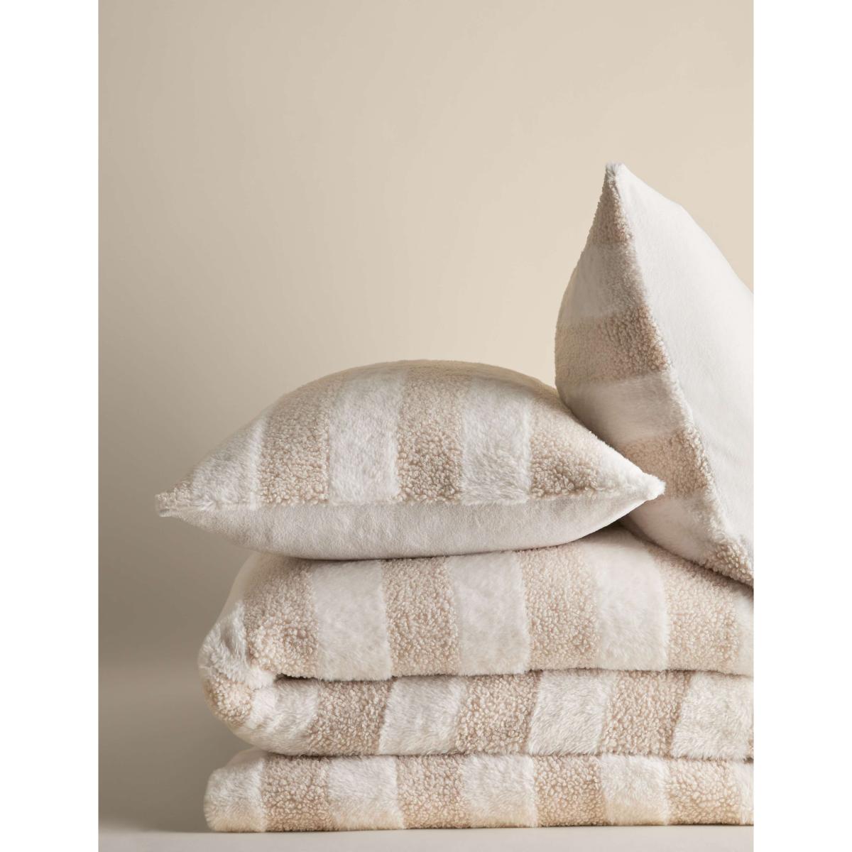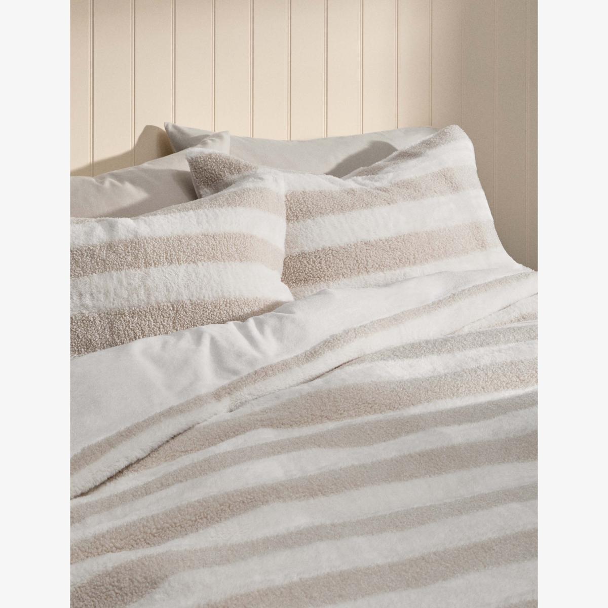 M&S Collection Borg And Fleece Striped Bedset - KING - Natural Mix, Natural Mix