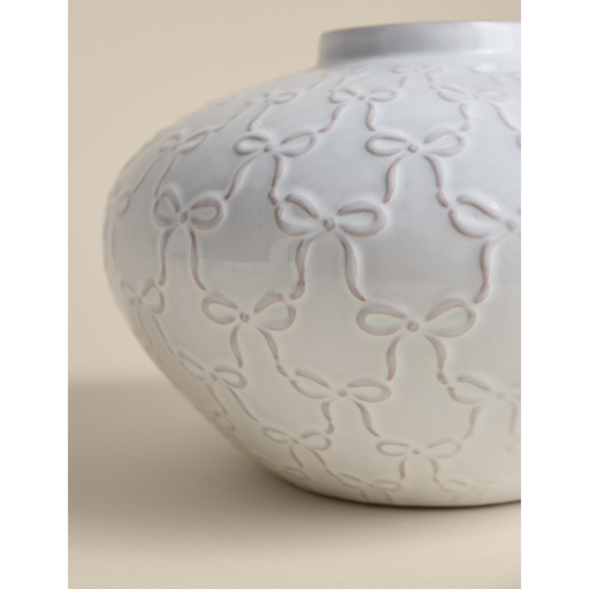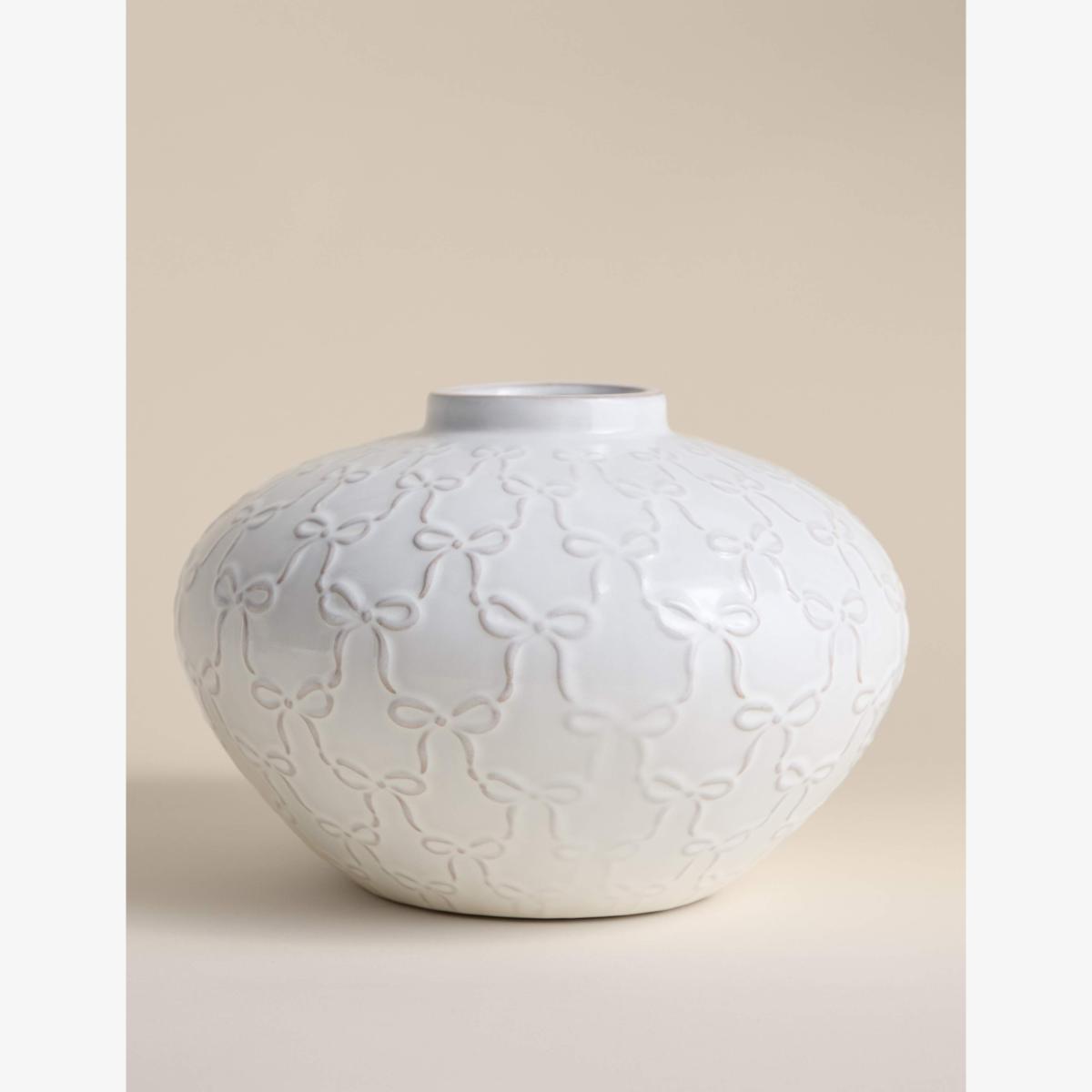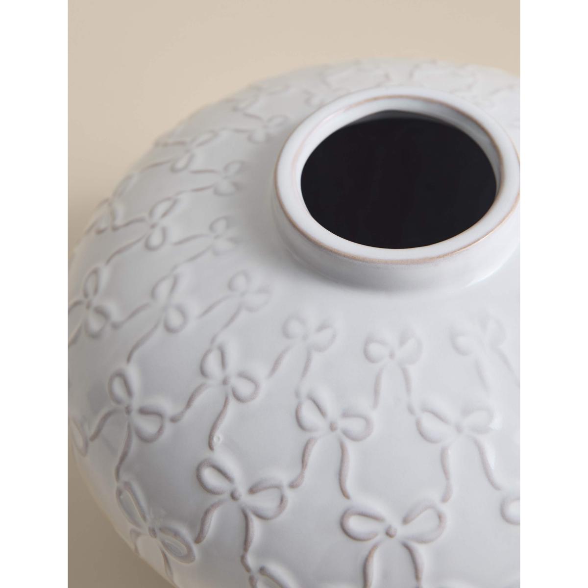 Display your favourite flowers in this stylish vase. It's made in an elegant, curved silhouette from durable ceramic. The design features all-over pretty bow detailing, which is highlighted by the sheer glaze for a textured finish.