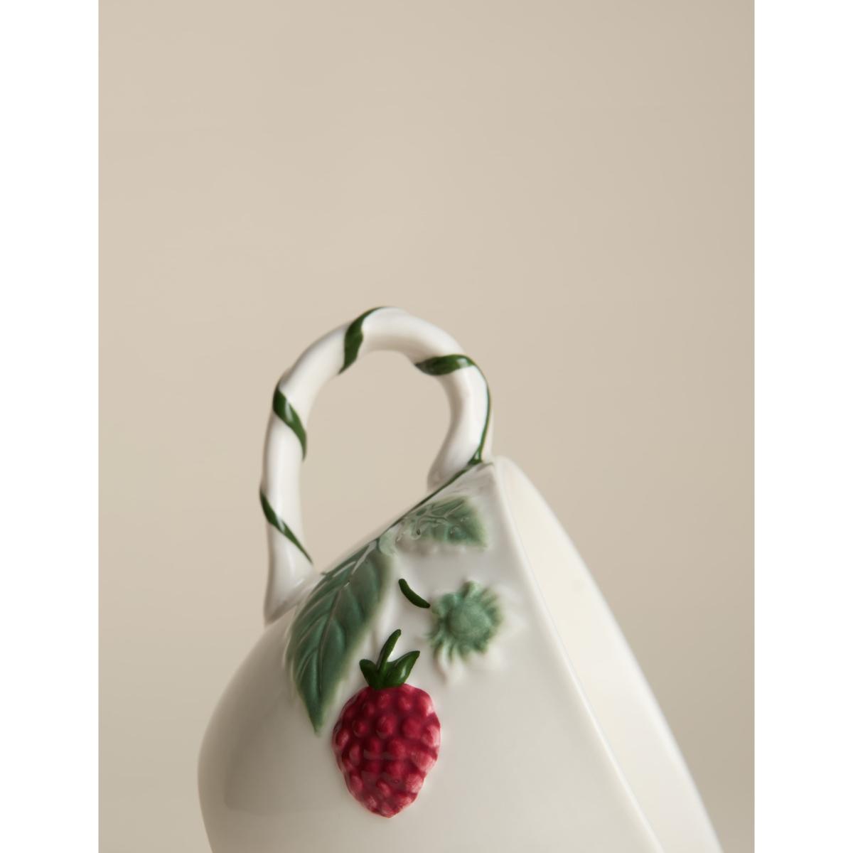 I love this little cup and saucer because of its charming, vintage-inspired design and vibrant red colour, which adds a cheerful touch to any setting. It works particularly well in cosy, cottage-style interiors or traditional kitchens where classic patterns and bright accents are appreciated. For styling tips, try pairing it with other red or green accessories for a festive feel, or display it on a open shelf alongside neutral tableware to create an eye-catching focal point. Its small size makes it perfect for accenting open shelving or a bedside table, and pairing it with some artificial flowers, like the bramble spray, can enhance its charm and give your space a personalised touch.