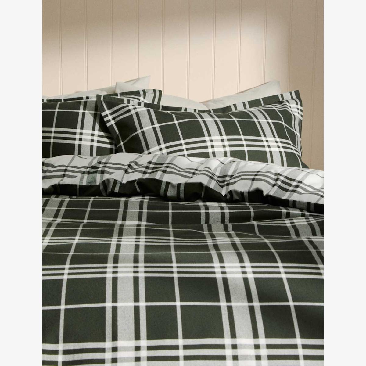 M&S Collection Brushed Cotton Checked Bedding Set - KING - Green, Green,Natural