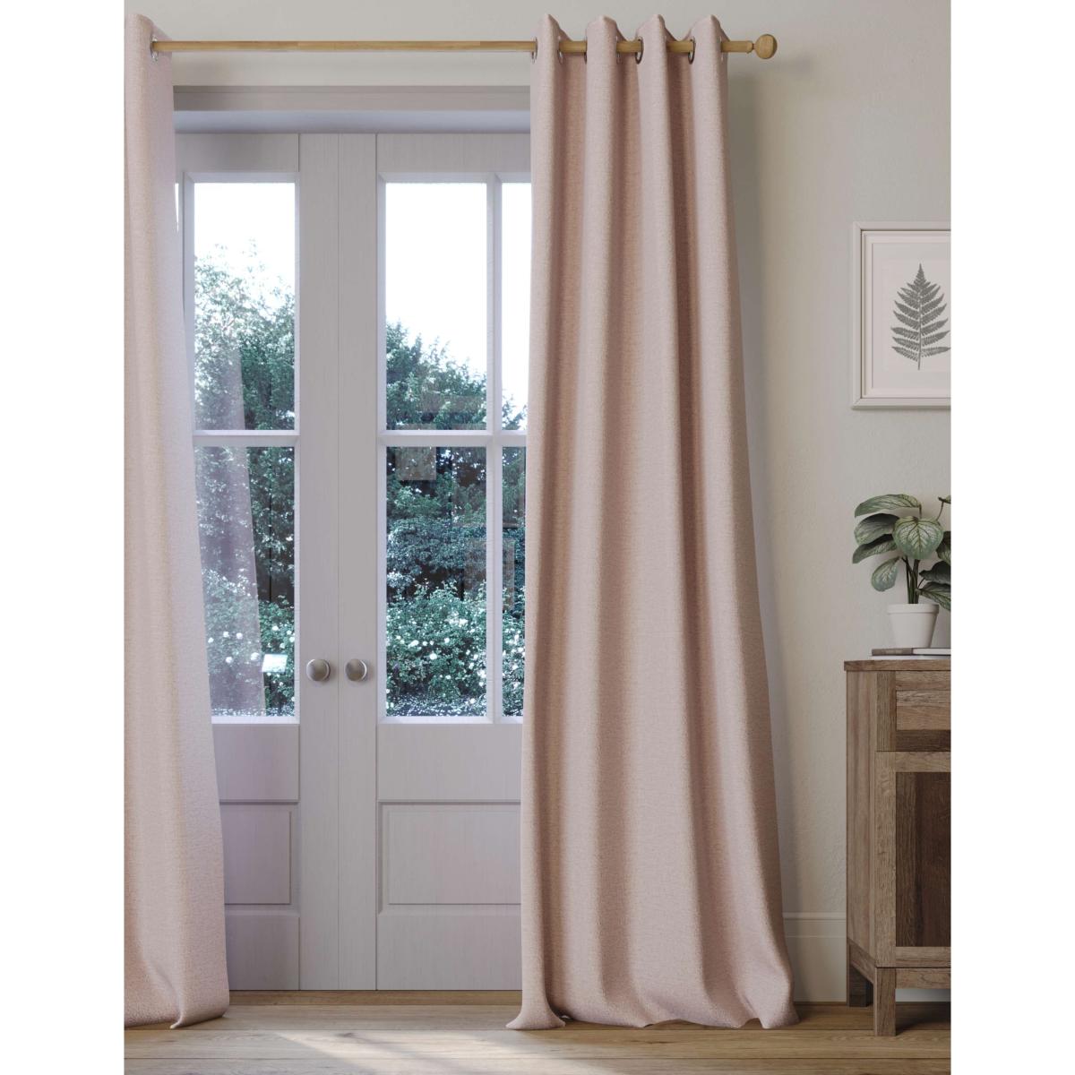Nothing pulls a room together like the perfect set of curtains. This pair is crafted from brushed fabric for an elegant drape and are easy to hang thanks to eyelet detailing. A blackout finish blocks light from outside and ensures total privacy. Not only that but these curtains are temperature smart, so their thermal lining helps keep the heat in during the winter and out during the summer. Maximum Warmth Heat Rating: Our Maximum Warmth heat rating means that this fabric is proven to show thermal performance helping you keep you warm when the weather gets chilly.