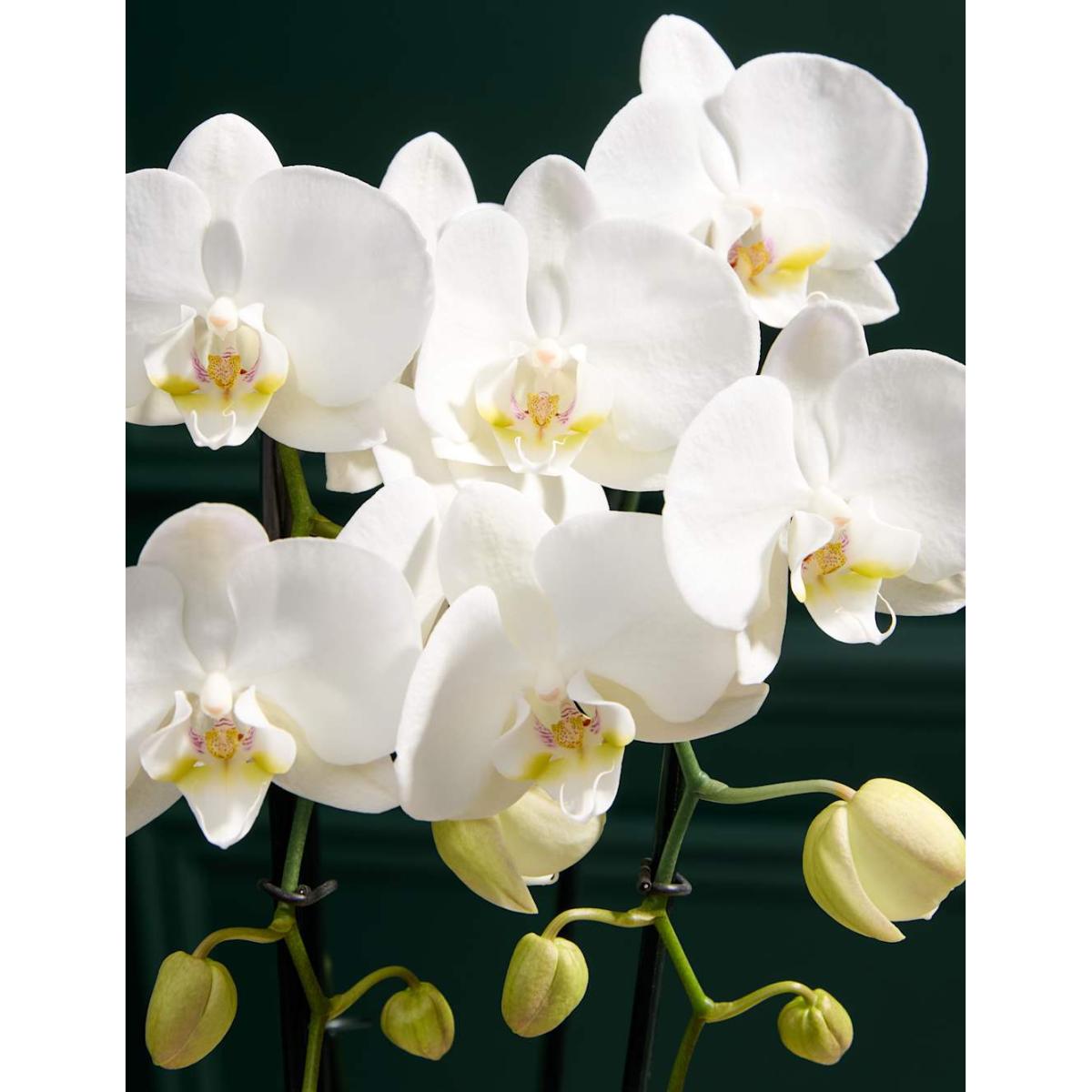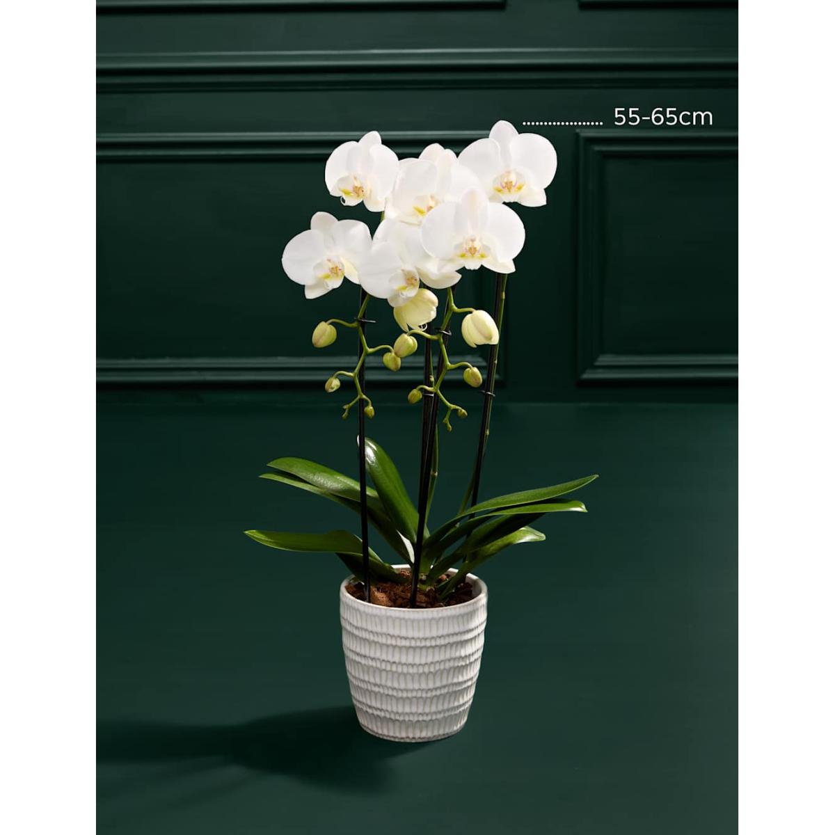 Celebrate Mother’s Day in style with our exquisite Orchid Cascade in a sleek Portuguese white ceramic pot, paired with a luxurious candle and a bottle of fine champagne. This elegant bundle is the perfect way to treat your mum to beauty, relaxation, and a celebratory toast. Colours may vary slightly throughout the season.