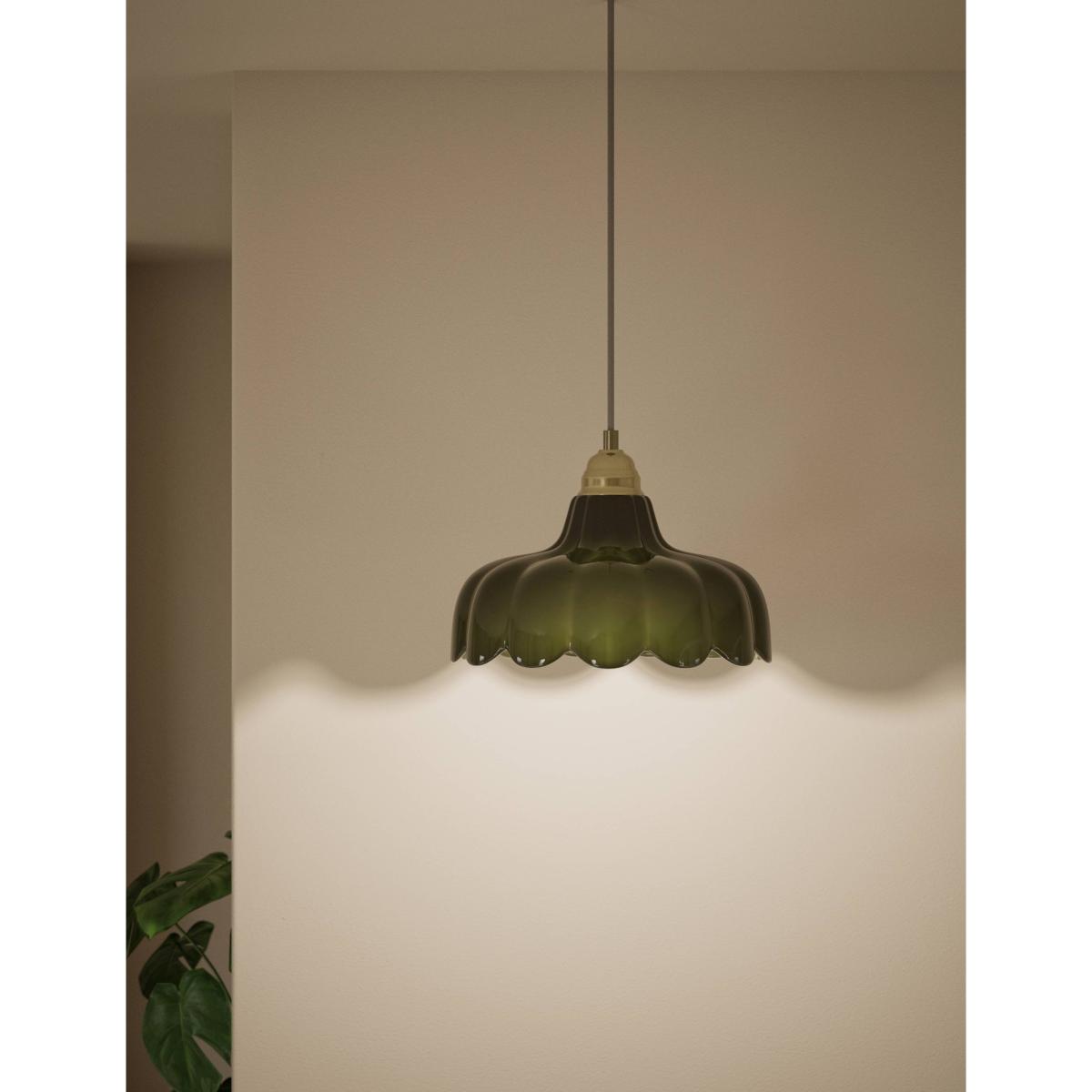 I love this Shallow Green ceiling light for its versatile, contemporary appeal. The scallop petal design adds subtle texture while keeping the look streamlined and modern. It works particularly well in cosy kitchens, dining rooms or bedrooms with a relaxed, eclectic style. Practical styling tips include pairing it with natural materials like wood or wicker for a warm, inviting atmosphere, or accessorising with matching green accents for a cohesive look. Its dark green colour offers a rich, sophisticated focal point without overwhelming the space, making it suitable for both minimal and more layered interiors. This shade is easy to integrate into a variety of colour schemes, adding character to spaces that need a touch of understated elegance.