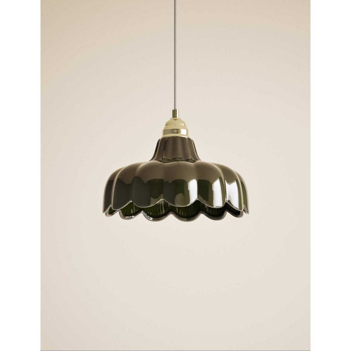 Add an eye-catching focal point to your interior with this ceramic light shade. It's made in an on-trend olive green tone and features an elegant petal design with scalloped edges. The easy-fit system makes it effortless to install, whichever room you choose.