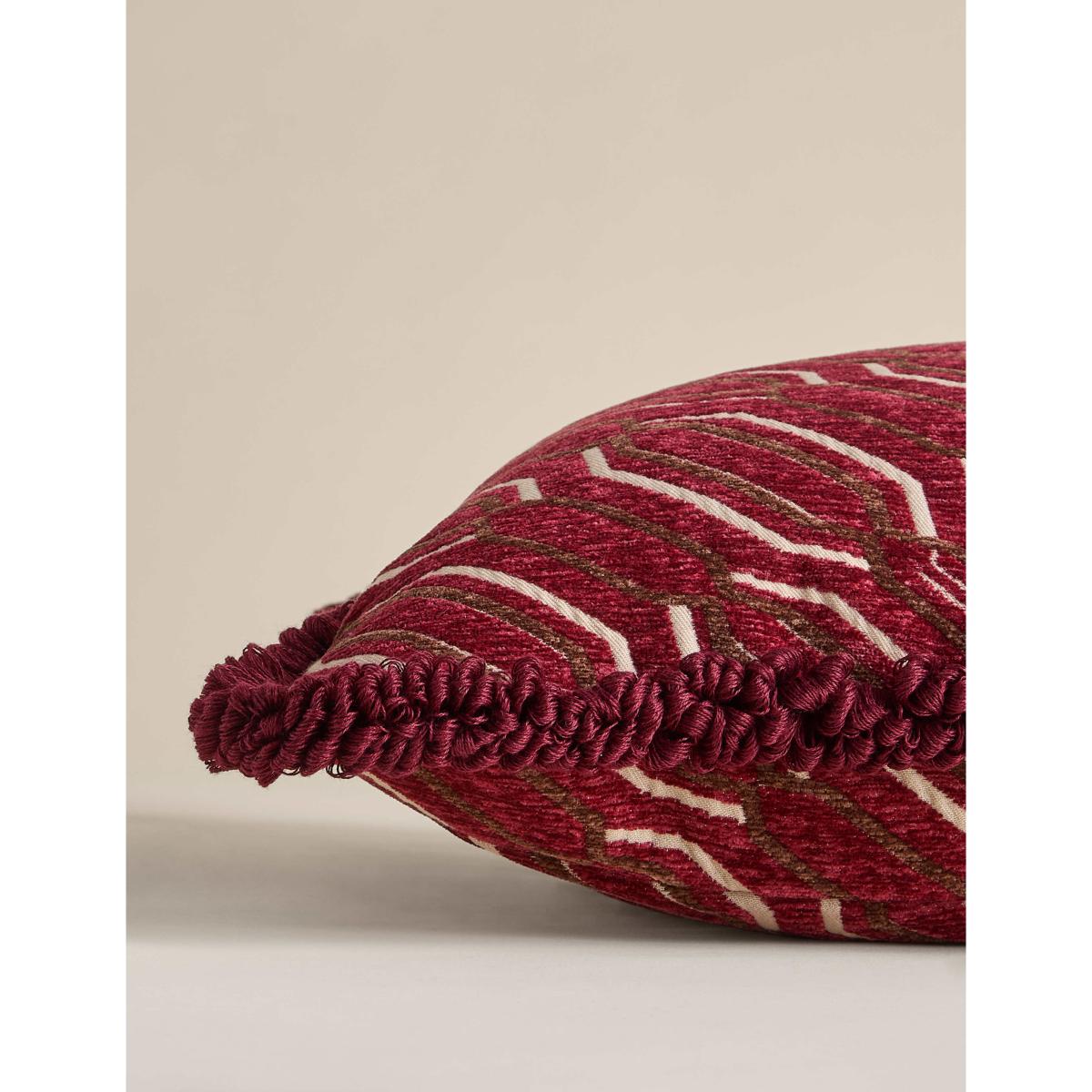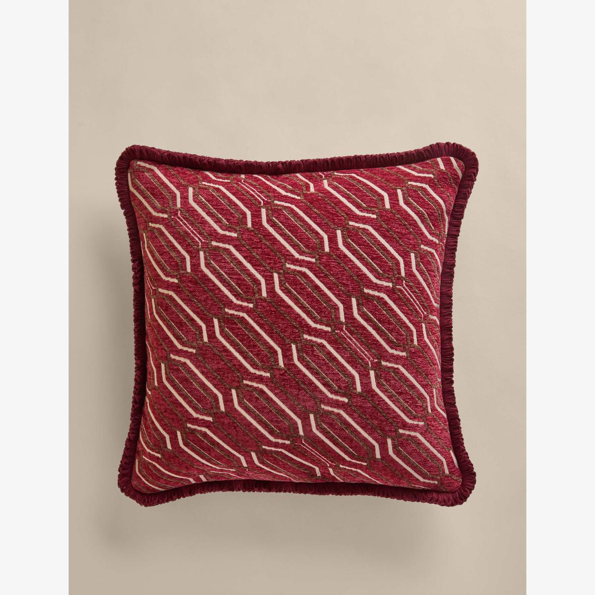 Add a bold design touch to your space with this geometric cushion. A fringed edge adds extra detail, while the soft chenille fabric makes it a comfortable piece for your sofa or armchair.