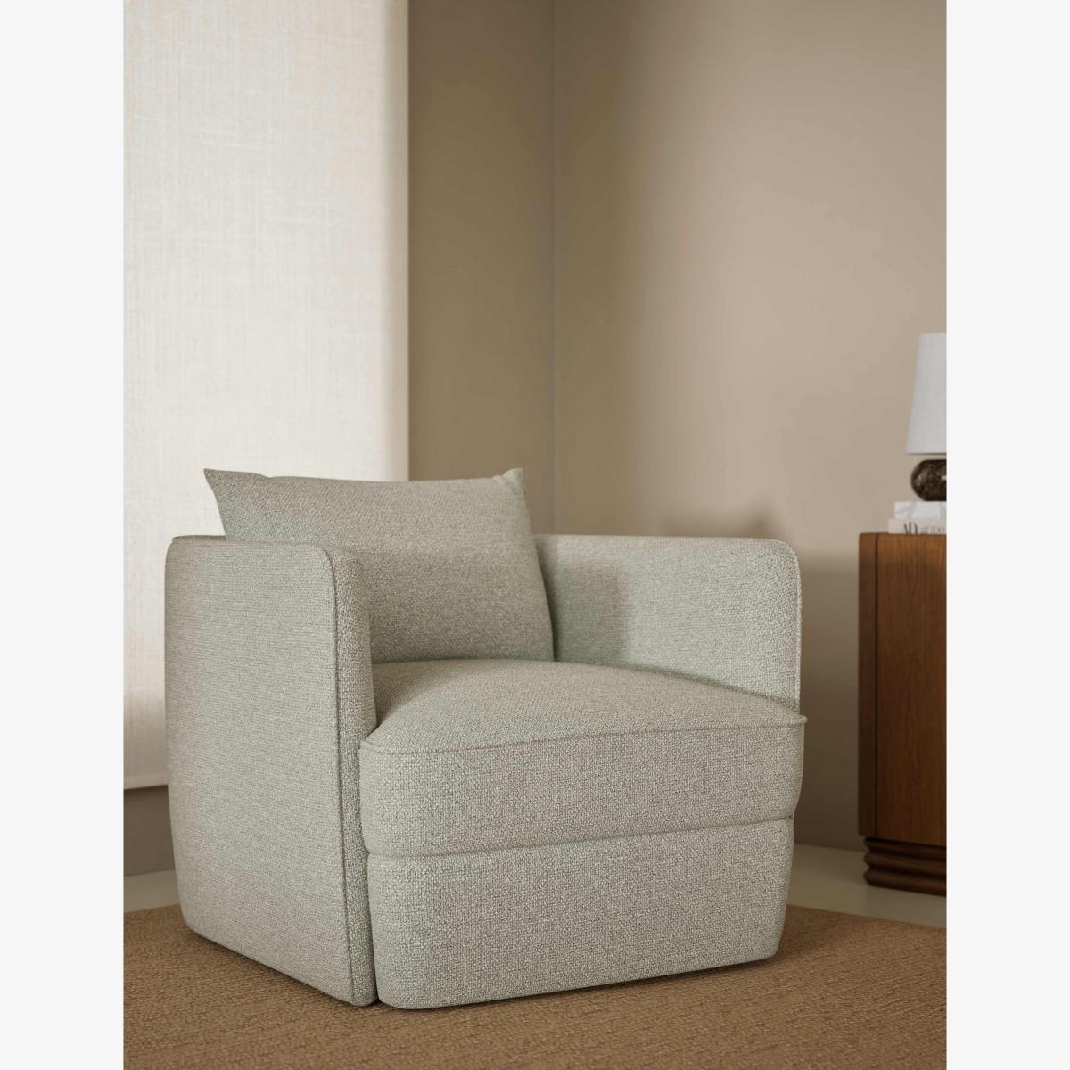 I love this armchair for its versatile grey chenille finish, which adds a touch of understated luxury to both modern and traditional interiors. It's a great choice for neutral schemes, as it pairs well with colourful accessories or sleek minimal palettes. Its chunky silhouette and soft fabric make it inviting and comfortable, perfect for relaxed living rooms or cozy corners. To style it effectively, consider layering with textured cushions or adding a throw to introduce subtle colour and pattern. It works well against both warm wood tones and cooler colour schemes, making it a flexible piece for different decorating styles.