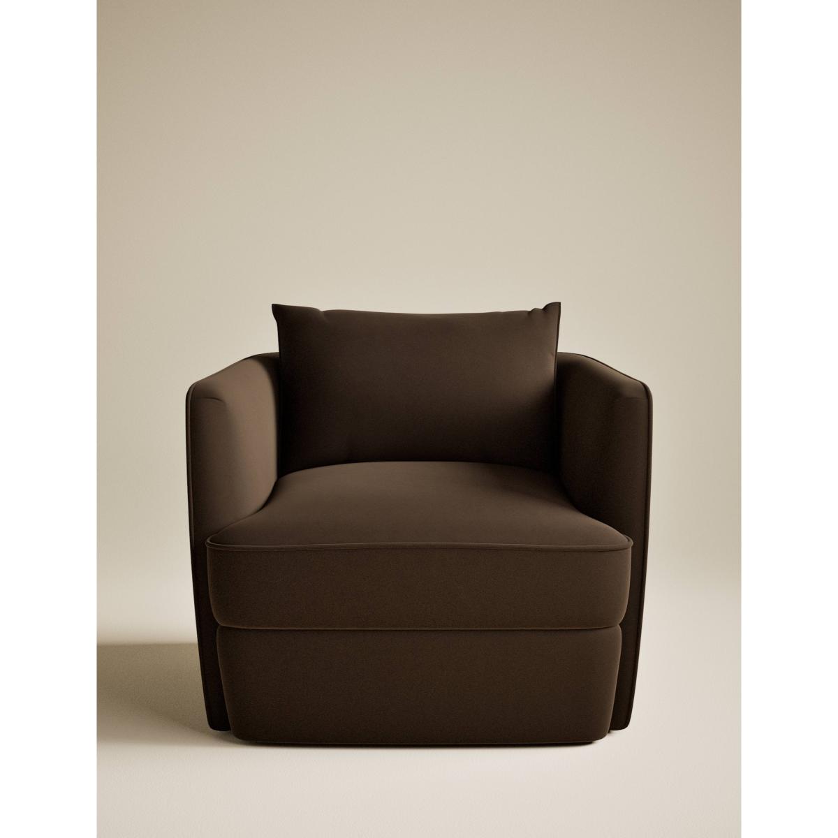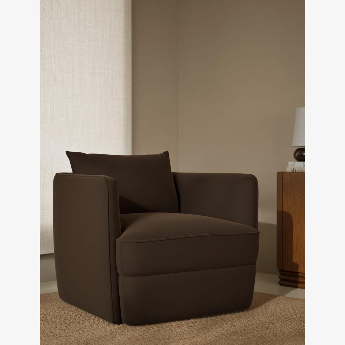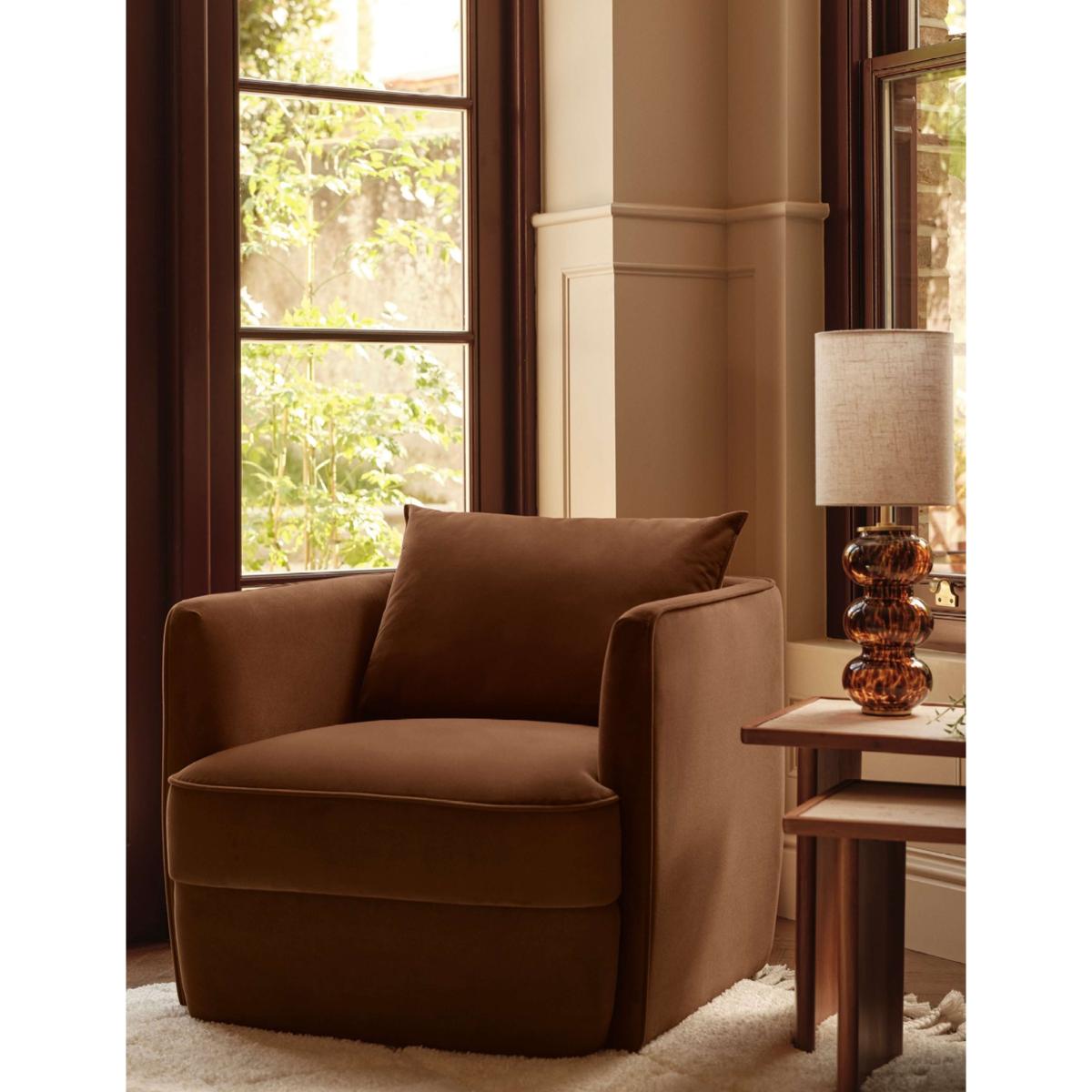 I really like this chair because of its rich velvet texture and versatile chocolate tone, which adds warmth and sophistication to both classic and contemporary interiors. It works particularly well in neutral or earthy colour schemes, serving as a statement piece that’s inviting and comfy. For styling tips, consider pairing it with textured cushions or a patterned throw to add visual interest, or situate it near a warm-toned rug and soft lighting for a cosy nook. Its sturdy form and plush seat make it a practical yet stylish choice for living rooms, reading corners, or even as an accent piece in a grouped seating arrangement.