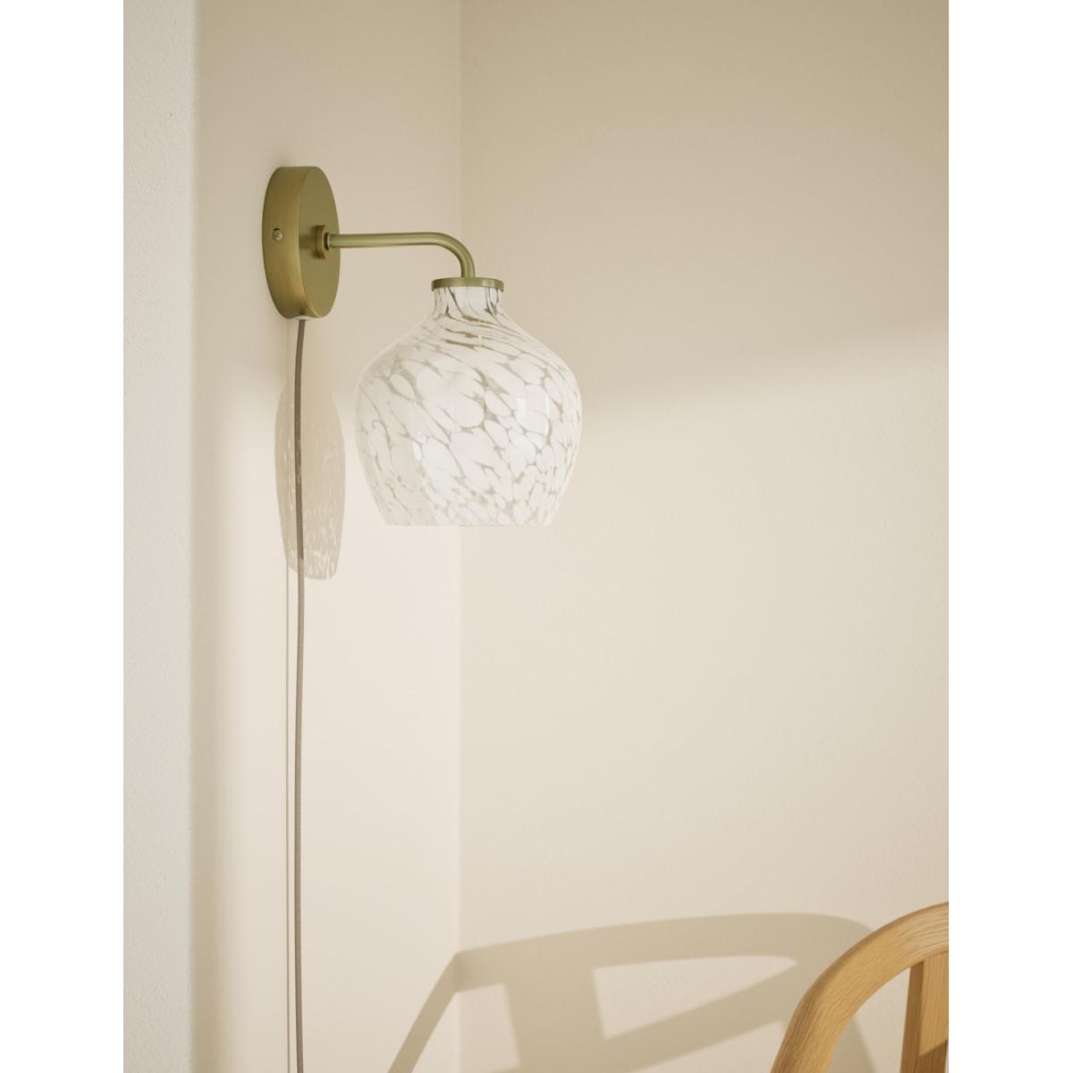 This wall light is made in a plug-in style so it's easy to position wherever you'd like. The glass shade is etched with an abstract design for a stylish look, while the metal fixings are brushed for a refined finish.