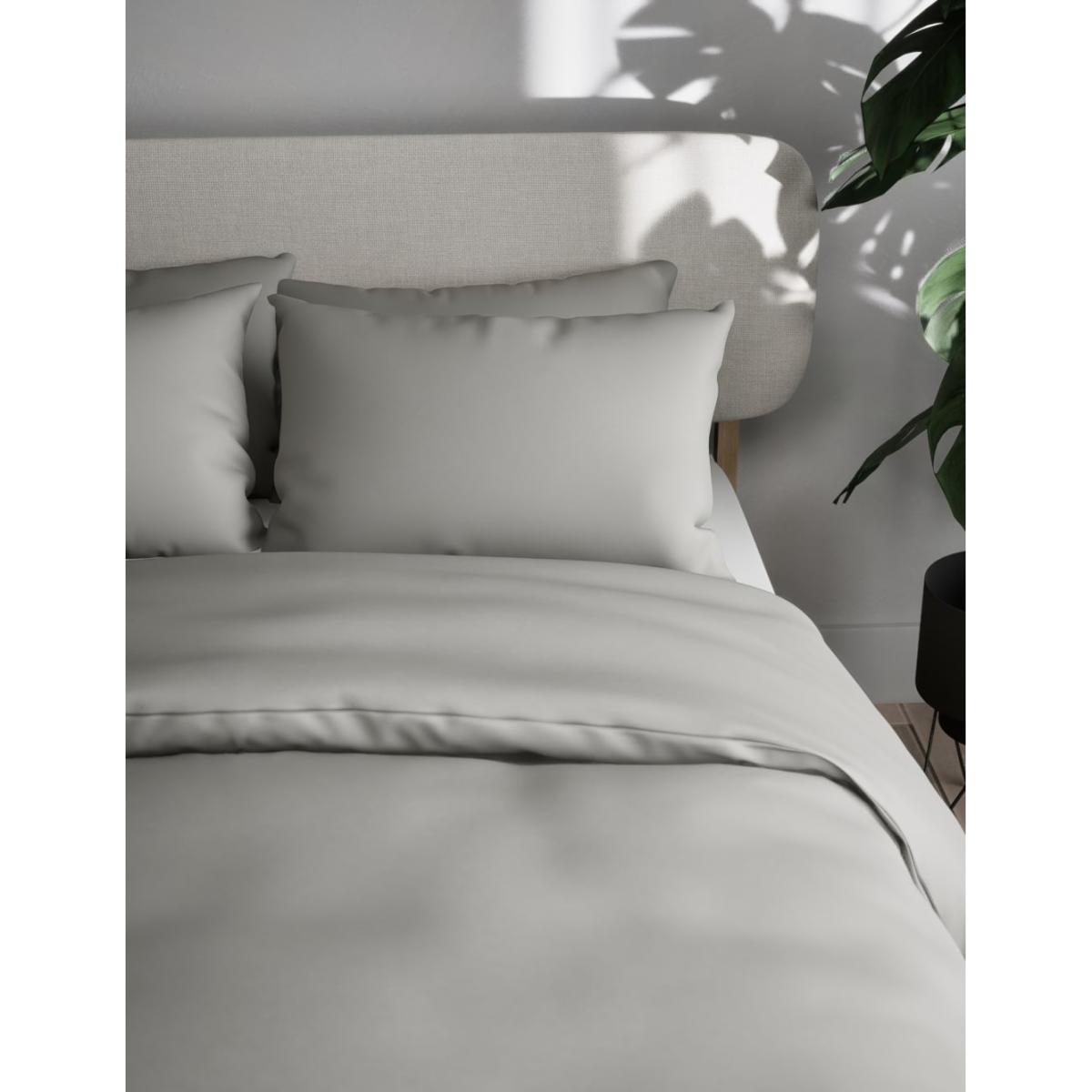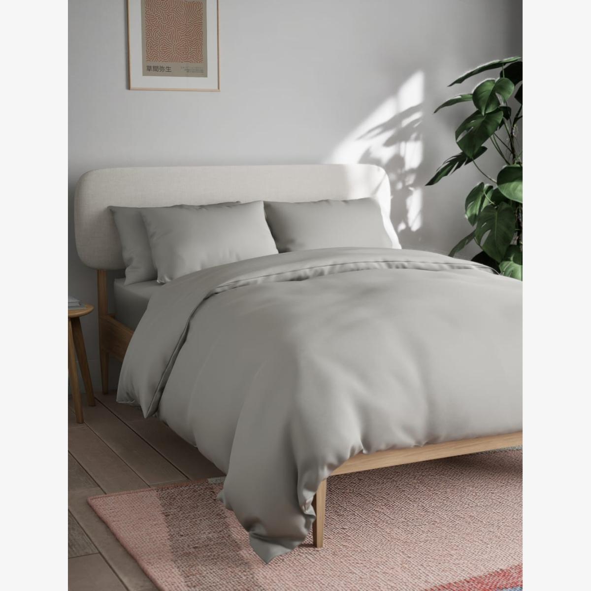 M&S Collection Cotton Blend Non Iron Bedding Set - SGL - Silver Grey, Silver Grey,White,Cream