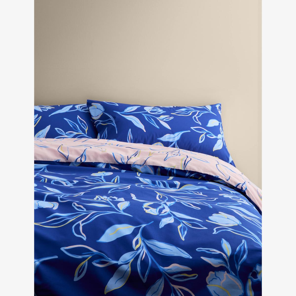 M&S Collection Cotton Rich Illustrated Floral Bedding Set - DBL - Blue Mix, Blue Mix