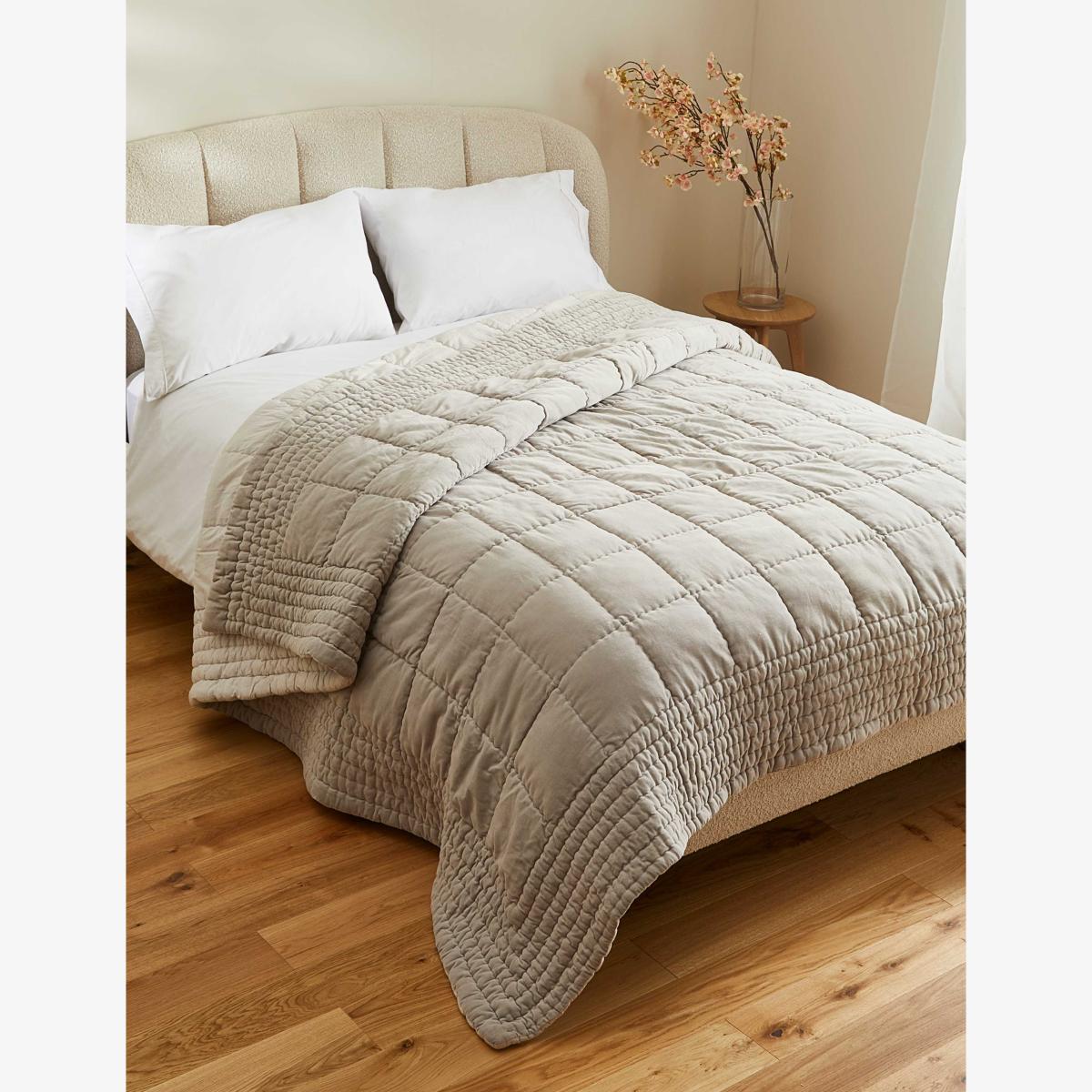 M&S Collection Cotton Velvet Quilted Bedspread - XL - Green, Gold,Sage,Pink,Navy,Grey,Green
