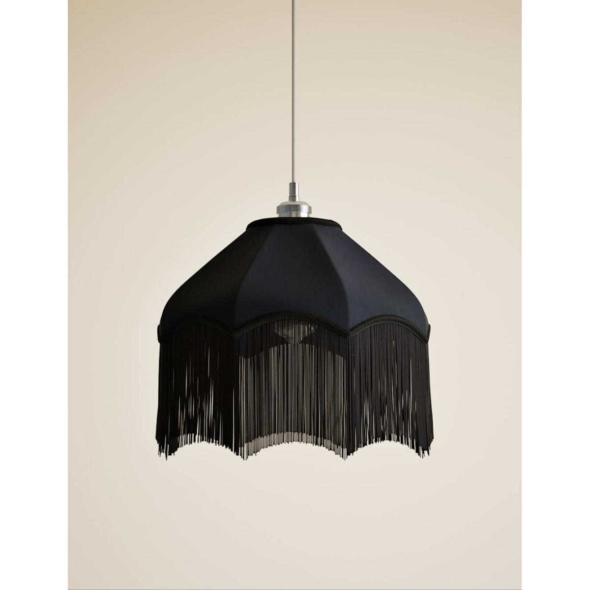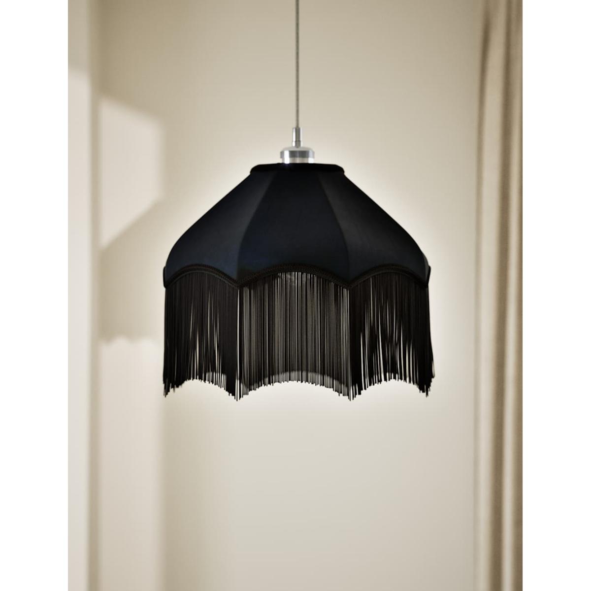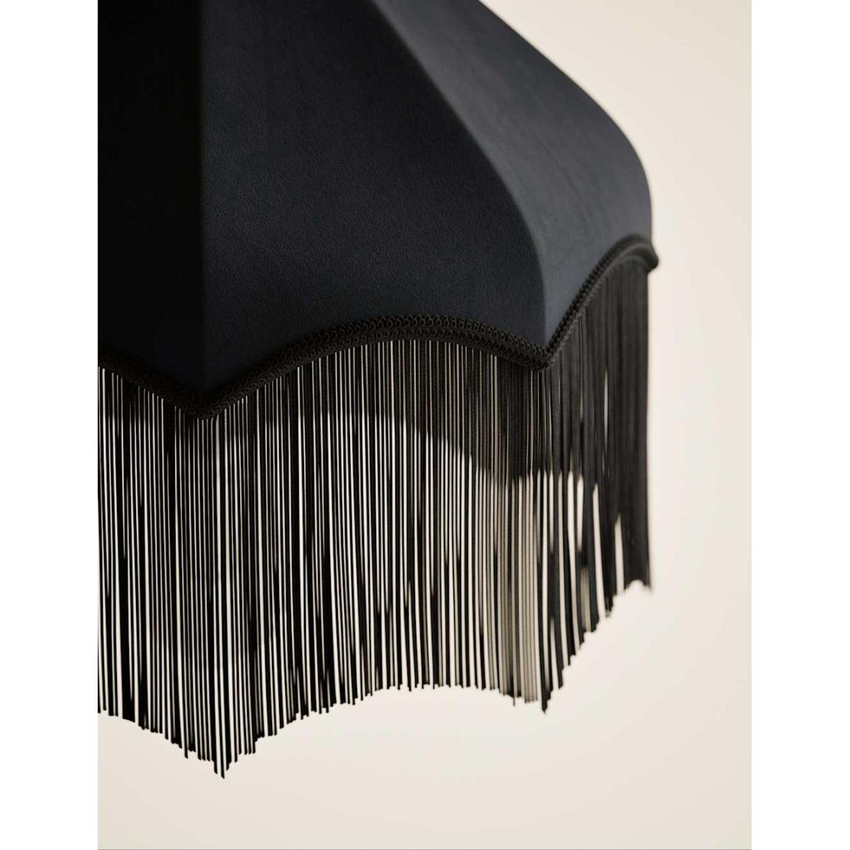 This fringed lamp shade will bring a classic look to your interior. It's finished in velvet with a braided tassel trim for a luxurious feel. It can be fitted with a lighting kit from our range. Styling Suggestion: Best styled on a table lamp or with one of our ceiling cable kits.