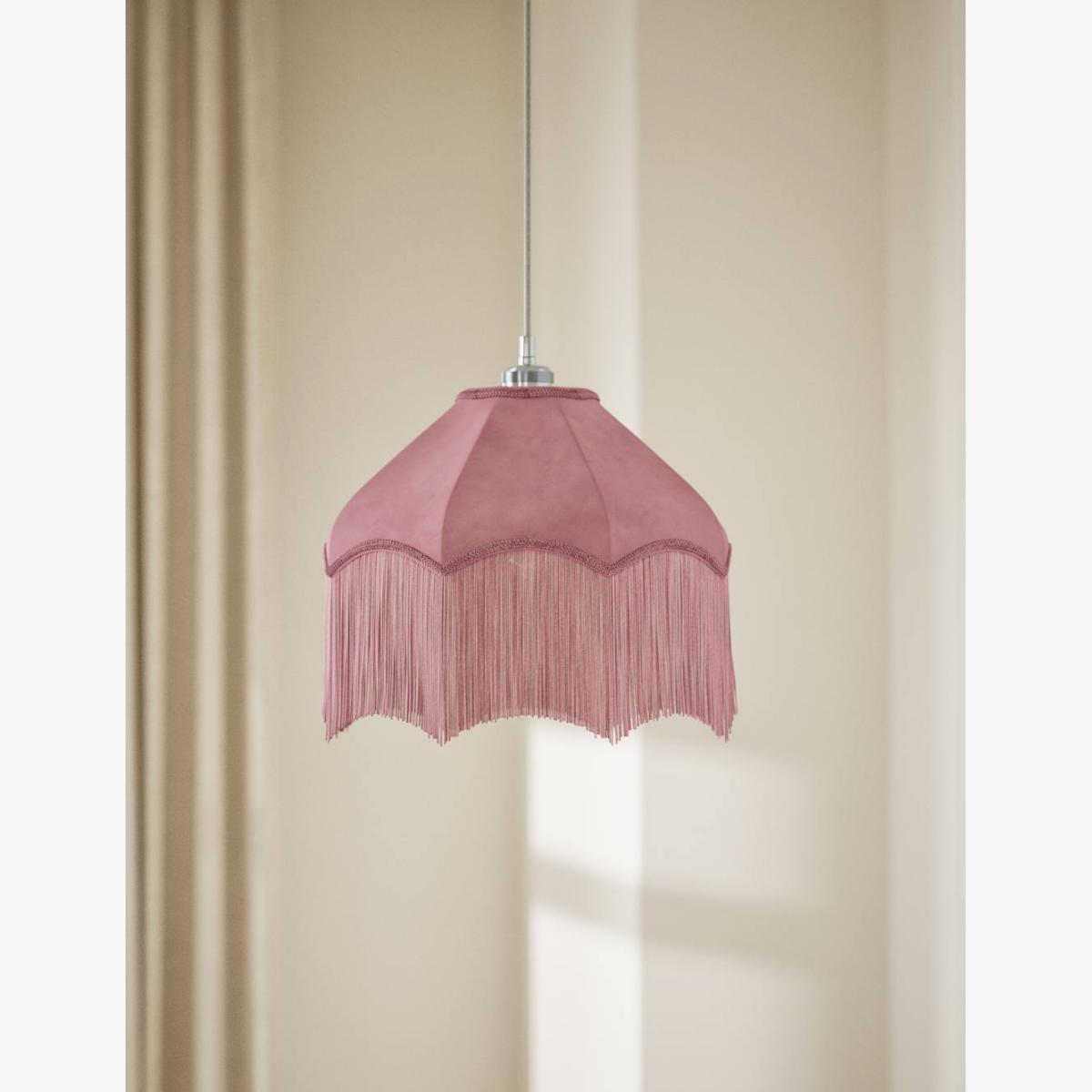 This fringed velvet lamp shade is a fantastic choice for adding texture and a pop of colour to a variety of interiors. I love how the fringed detail lends a vintage feel, making it particularly suitable for eclectic, boho, or retro-inspired spaces. It works well in living rooms or bedrooms where it can be paired with patterned cushions or textured throws. Practical styling tips include opting for warm, ambient bulbs to accentuate the velvet’s softness and fringed trim. To keep the look cohesive, consider combining it with other plush textiles or antique furniture, but it's also versatile enough to stand out against clean, modern decor for an eclectic twist. The range of colours allows you to either coordinate with existing palettes or to introduce a striking colour contrast.