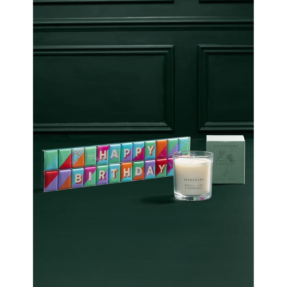 M&S Collection Happy Birthday Orchid with Chocolates & Candle