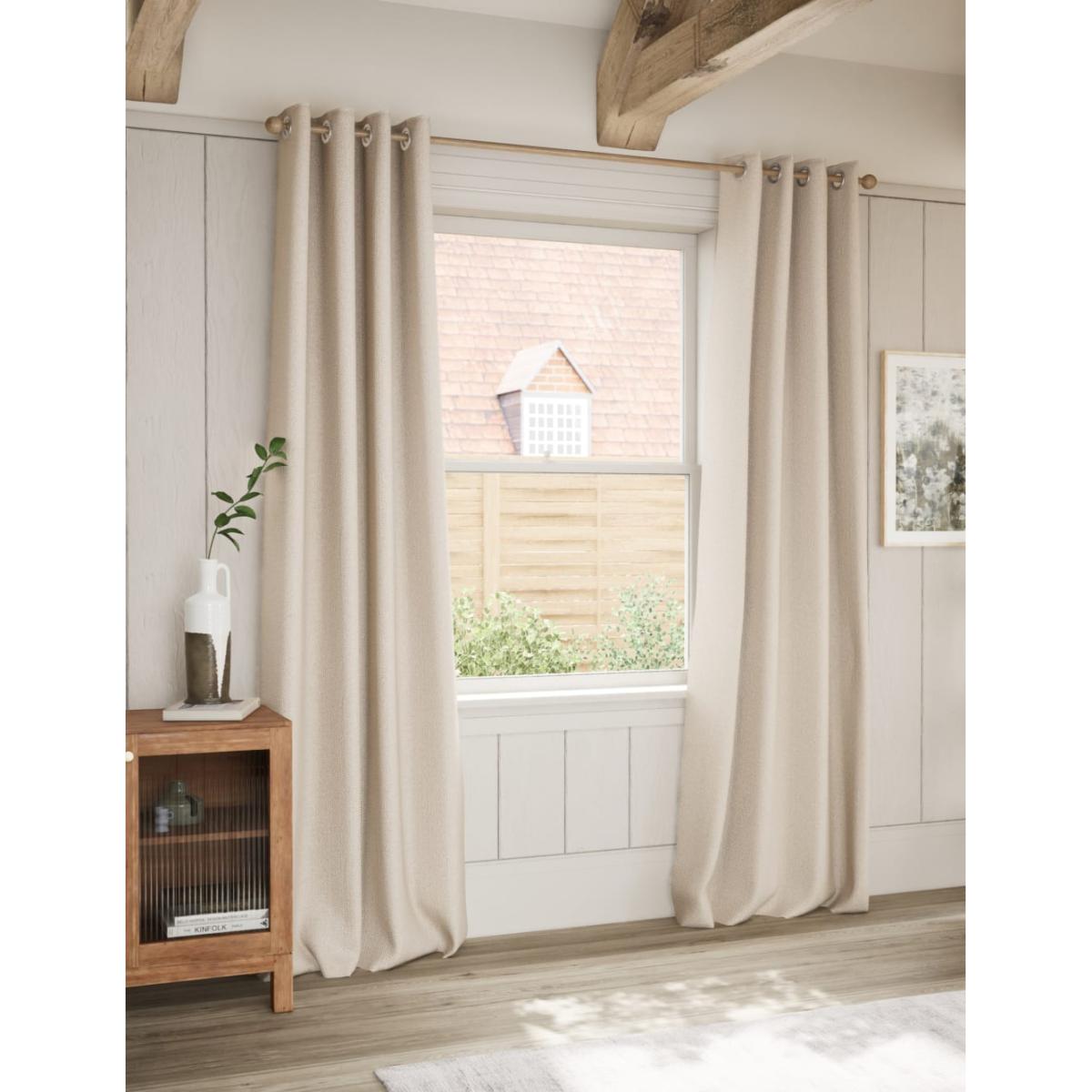I love these M&S herringbone eyelet curtains for their subtle texture and versatile colour palette. The pink and green accents make them a great choice for adding a gentle pop of colour without overwhelming the space. They work particularly well in contemporary or Scandinavian-inspired interiors, where soft tones and natural materials shine. Practical styling tips include pairing them with neutral wall colours to let the curtains stand out or layering with sheer curtains for added light control and elegance. Their eyelet design also makes for easy hanging and a clean, modern finish. Overall, they’re a stylish yet functional choice for creating a cosy, welcoming atmosphere.