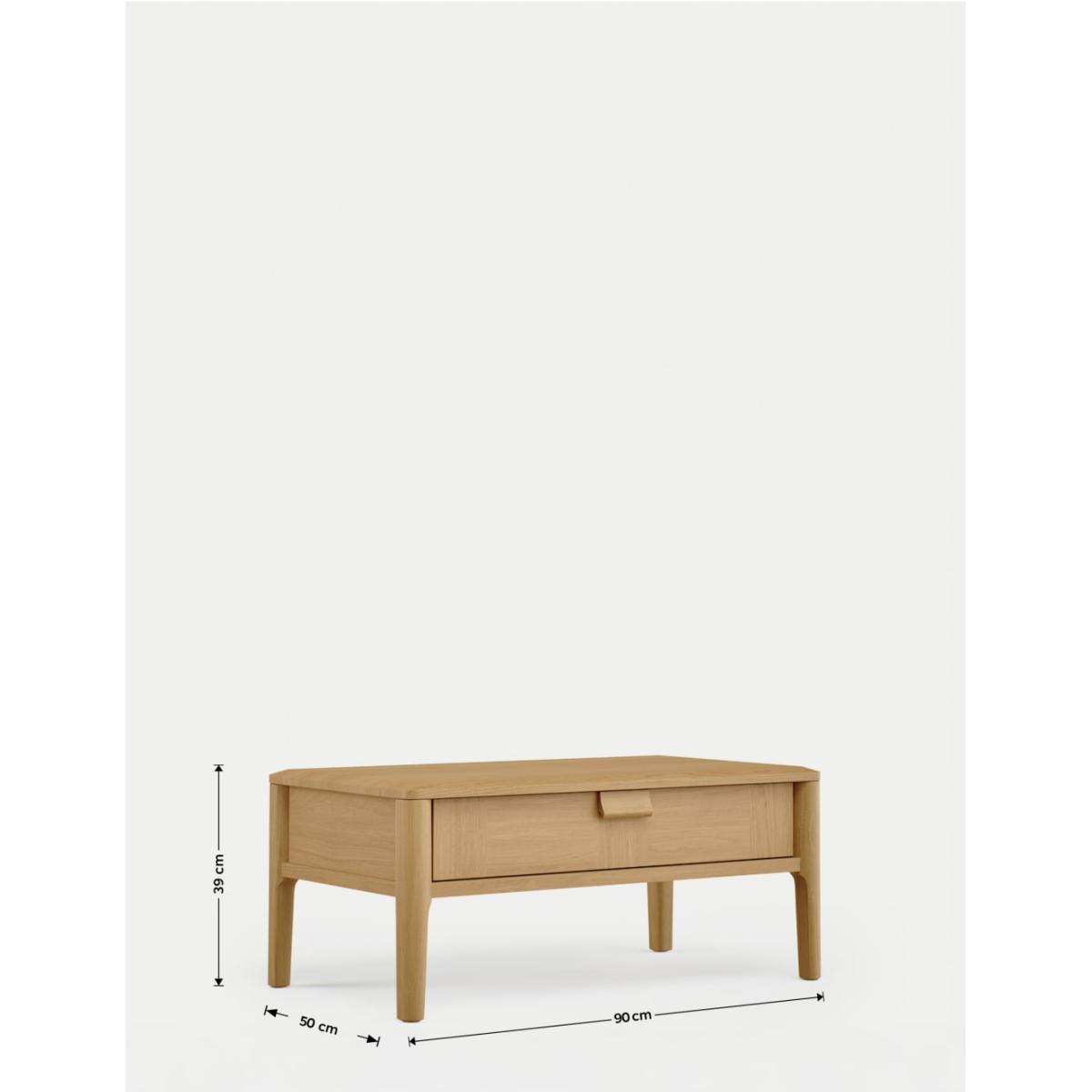 The Hutch Compact Coffee Table is a perfect blend of style and functionality. Featuring smooth curved edges, this elegant piece boasts a stunning oak veneer top supported by sturdy solid oak legs. Designed with practicality in mind, it includes a sleek single drawer for discreet storage, keeping your living space tidy and organised. We’re so confident our furniture is built to last, our industry-leading guarantee covers any manufacturing failure on all furniture. That’s our promise, and why our furniture comes with a 10-year guarantee that you can trust. Excludes: outdoor furniture and any issues that are a result of normal wear and tear, improper care or accidental damage.