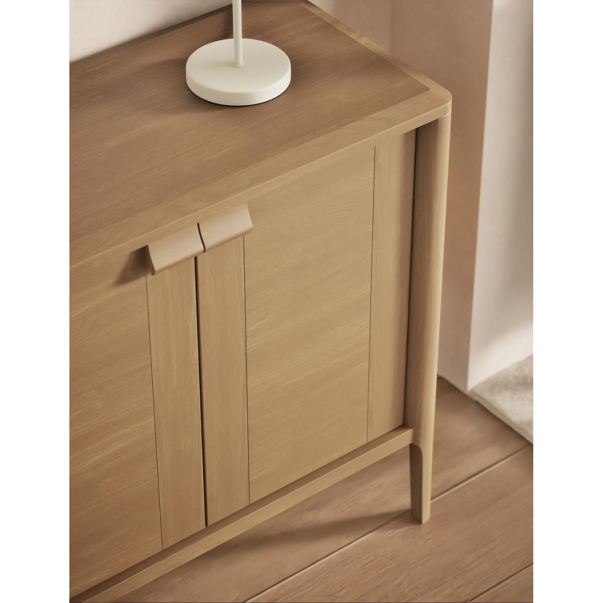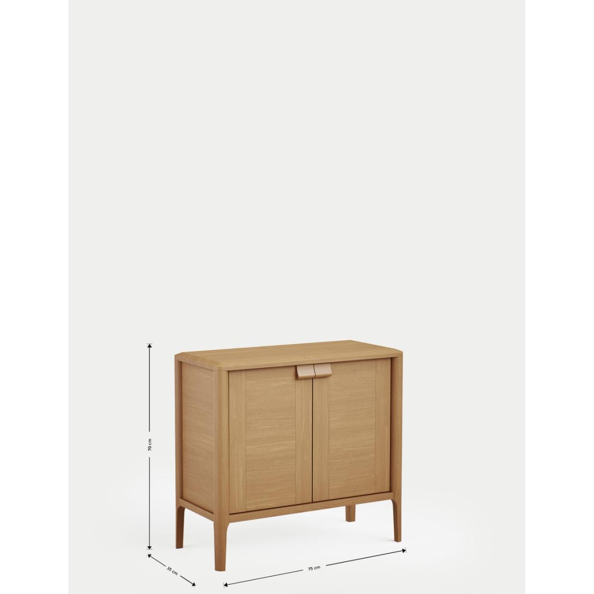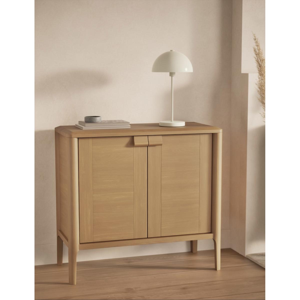 I’m a fan of this compact oak sideboard because its clean lines and warm oak finish slot effortlessly into both Scandi-inspired and contemporary-country schemes. Its modest footprint makes it ideal for smaller dining areas, hallways or living rooms where you still need smart concealed storage. Styling tip: keep the top simple - a low vase, a sculptural bowl and one or two framed prints or a round mirror above creates balance. Inside the cupboard you can stow board games, table linens or media kit; consider adding woven baskets for neat organisation. Pair with muted textiles and a touch of matte black or brass hardware elsewhere in the room to tie it all together.