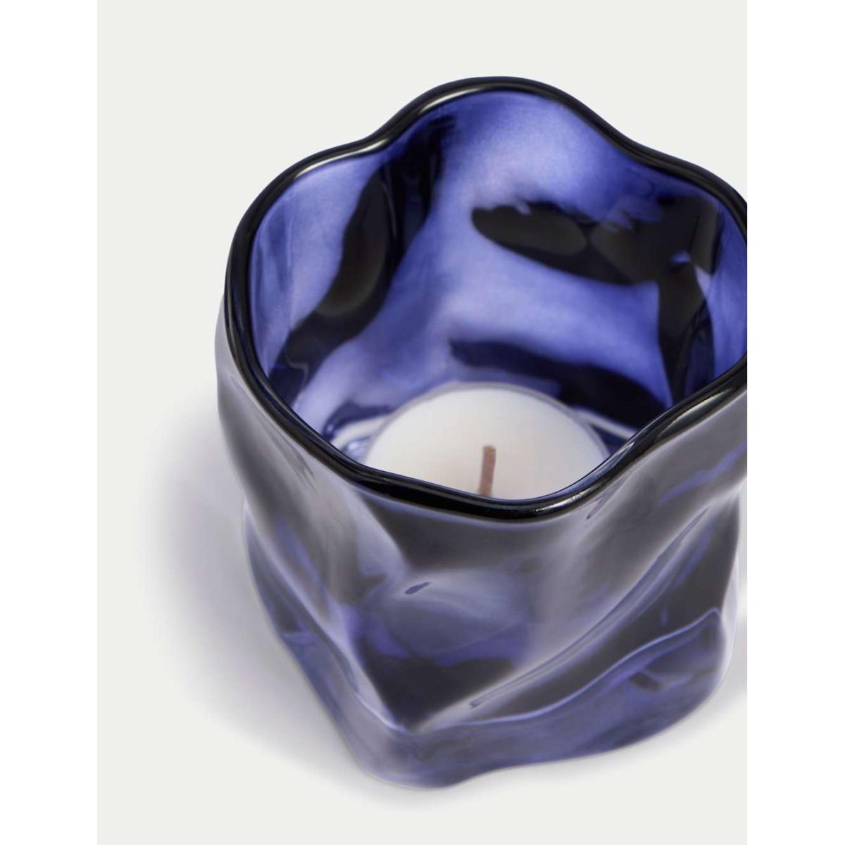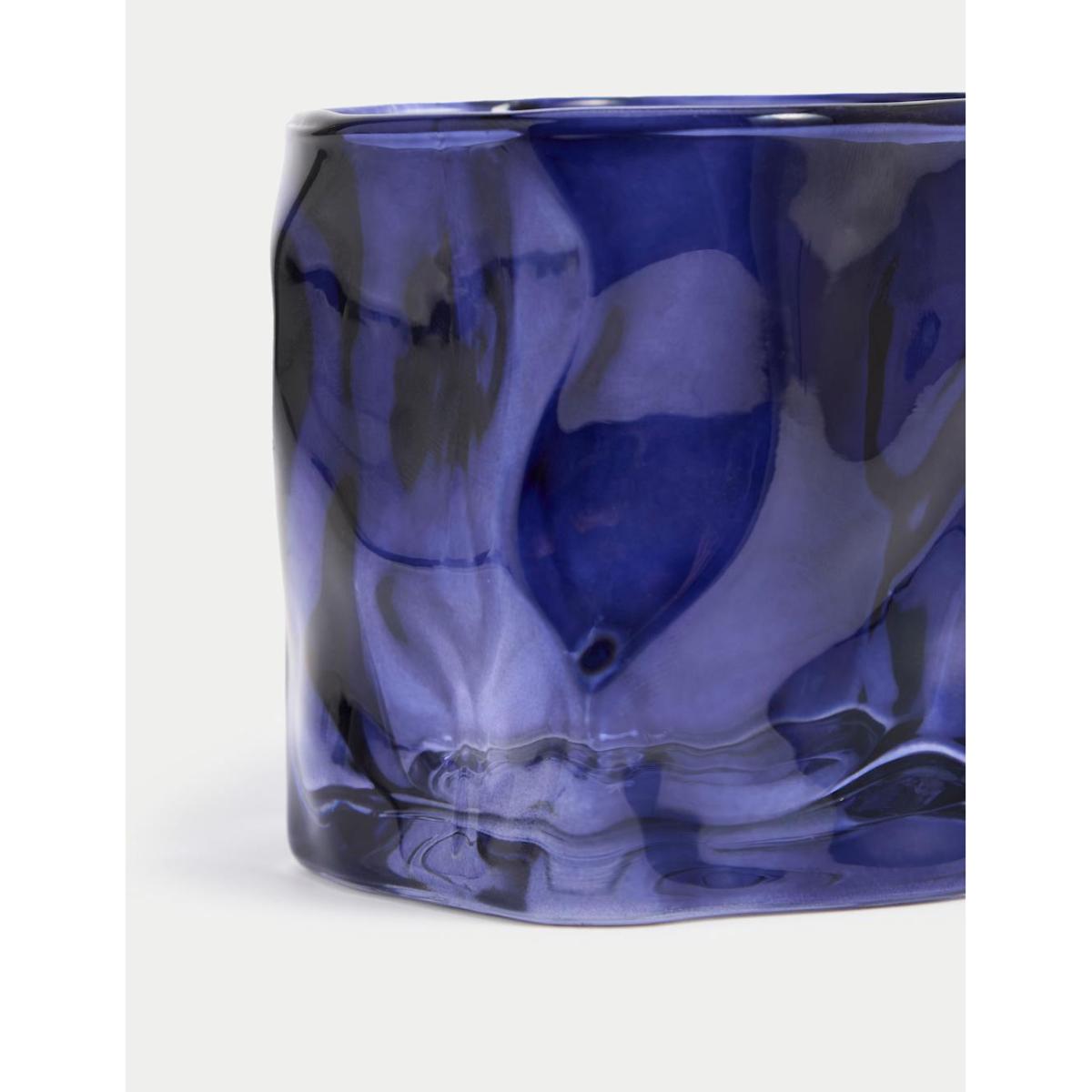 M&S Collection Irregular Glass Candle Holder - Blue, Blue