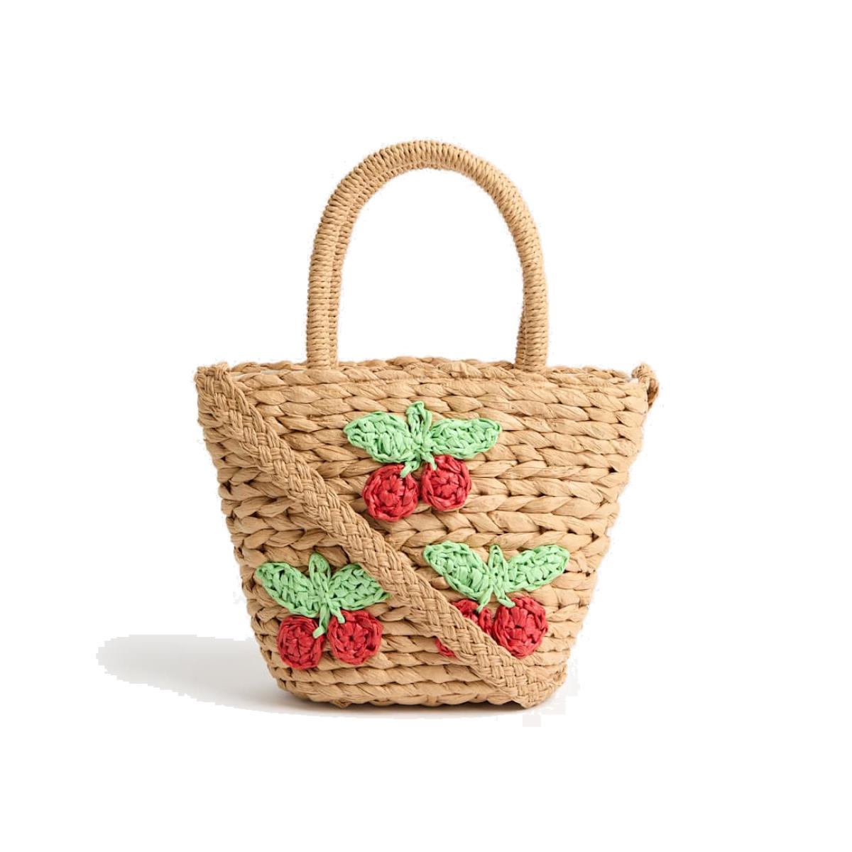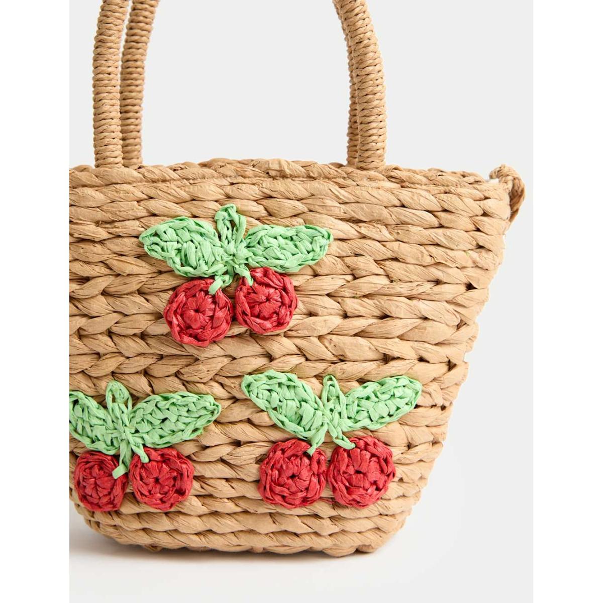 M&S Collection Kids Cherry Straw Basket Bag - Natural, Natural