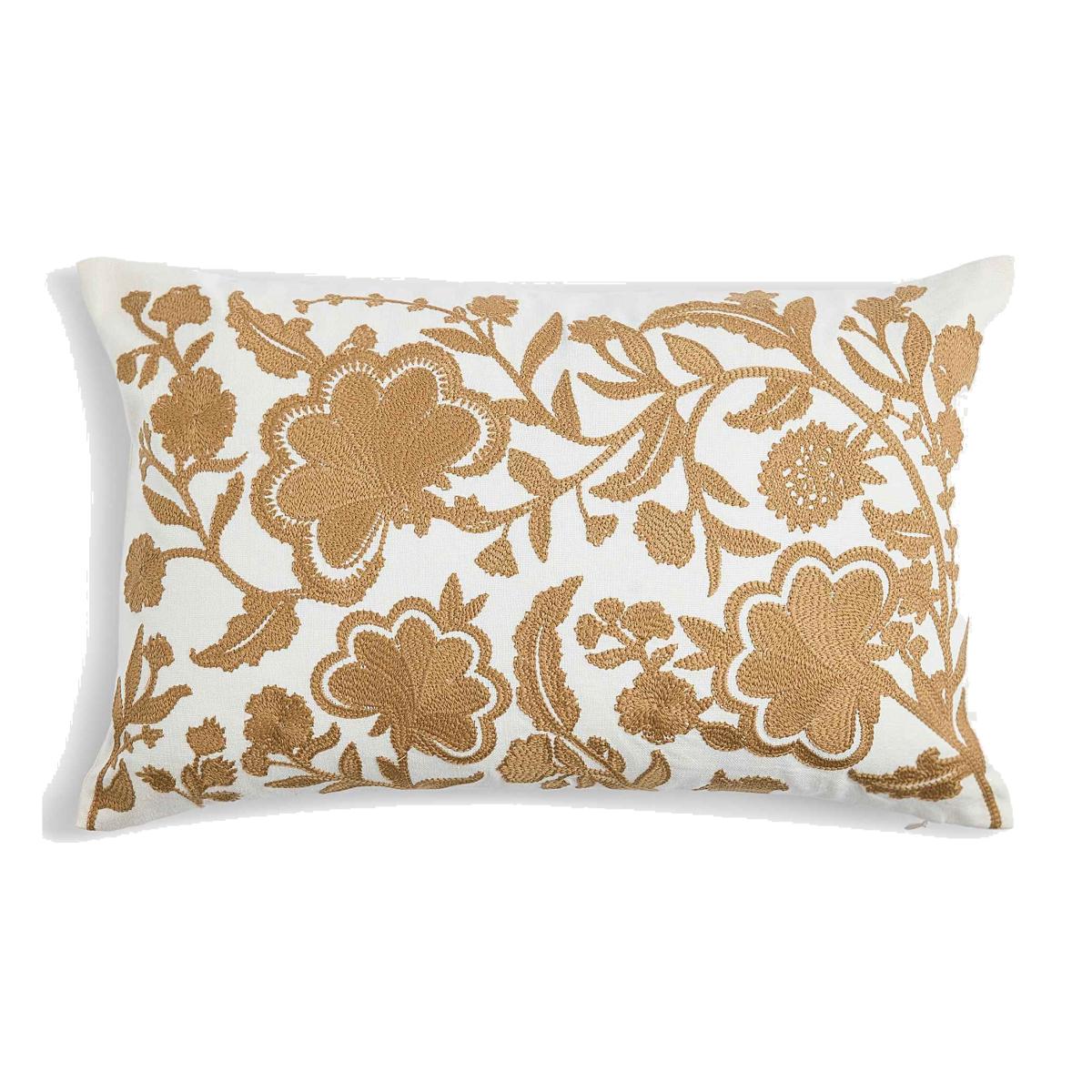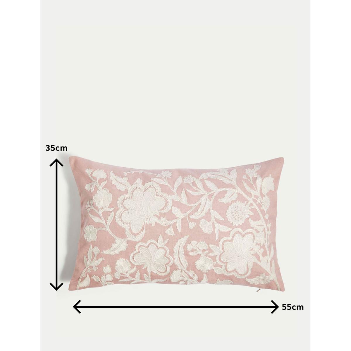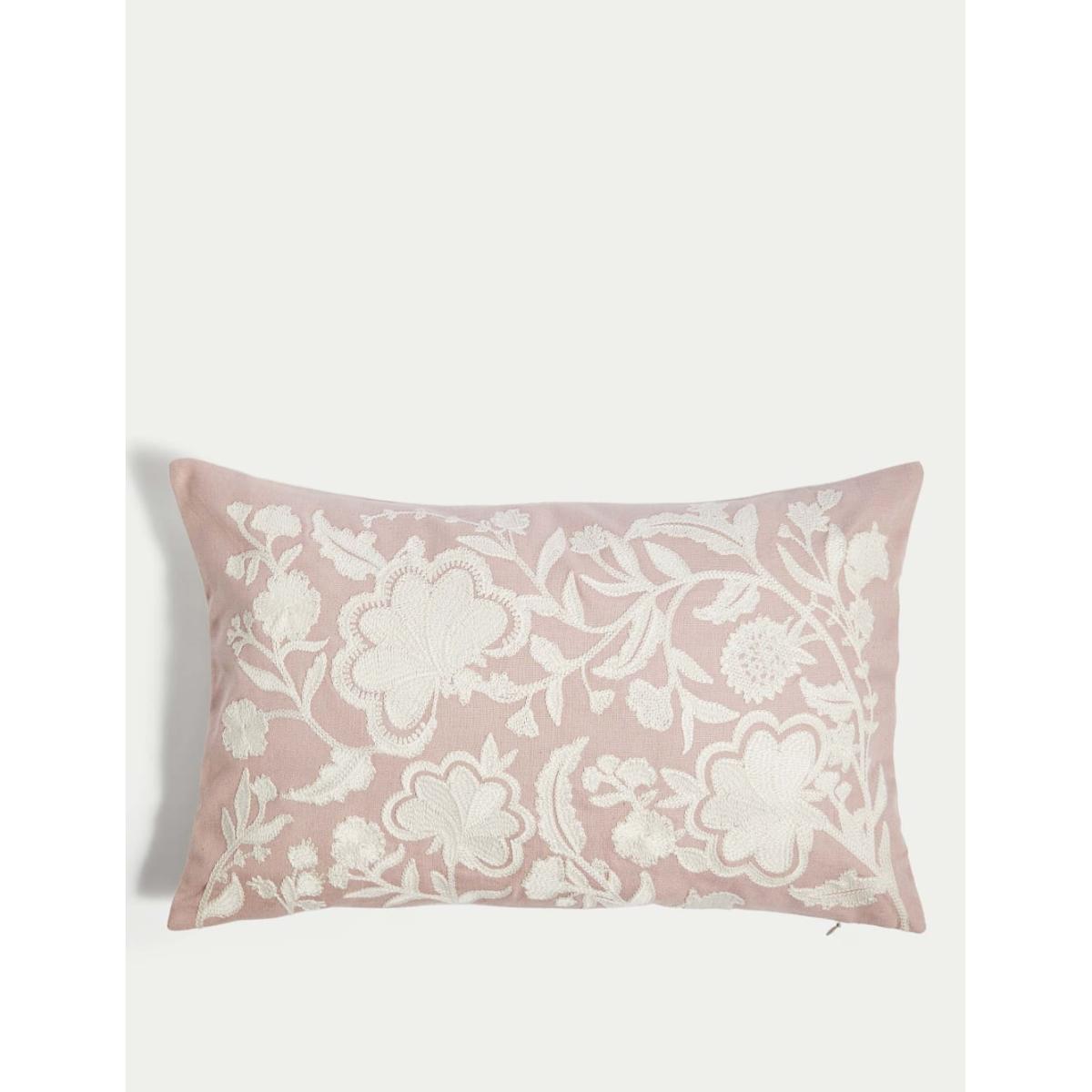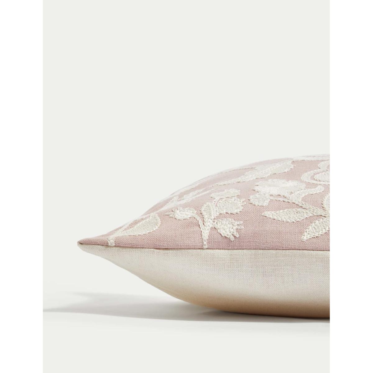 M&S Collection Linen Blend Floral Embroidered Bolster Cushion - Gold Mix, Gold Mix,Pink Mix