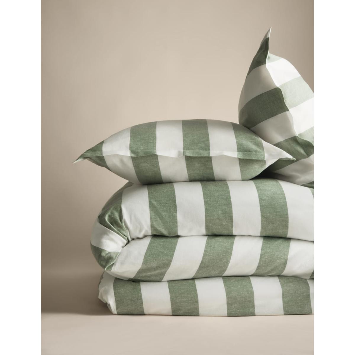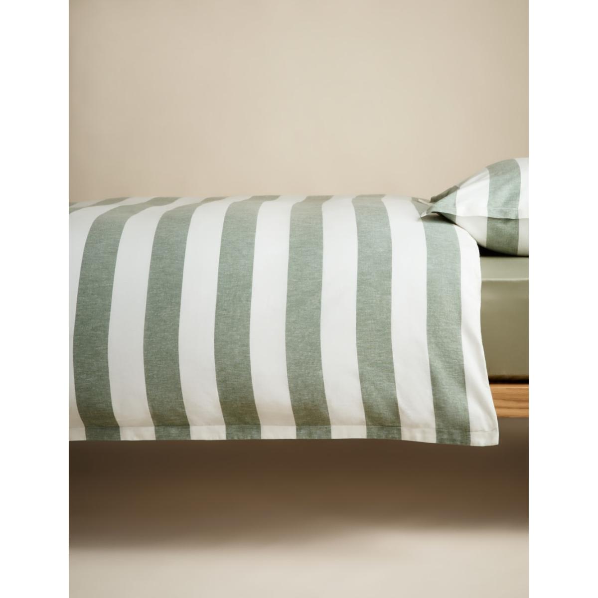 This timeless bedding set is crafted from linen-blend, cotton-rich fabric for a soft and breathable feel against the skin. It has a striped print that lends a nautical-inspired look. A buttoned edge along the duvet cover adds a practical finish.