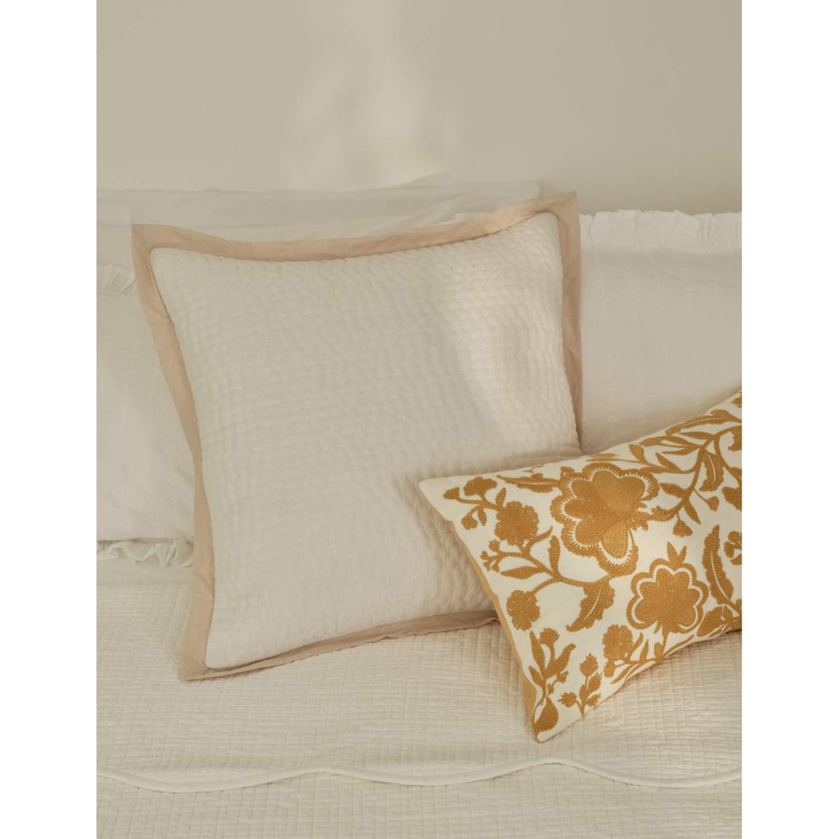 Bring a refined feel to your room with this square scatter cushion. It's made in a generous large size, with tonal quilting on the pure cotton panels. A feather filling ensures sink-in comfort, while a contrast linen border adds an elegant finishing touch.