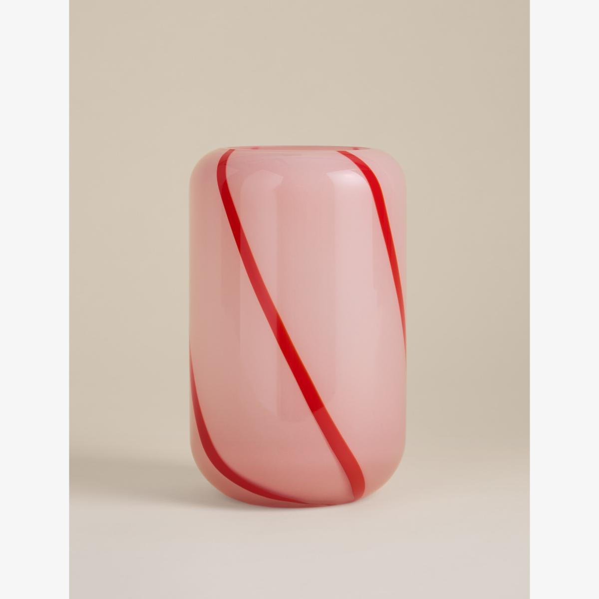 A candy cane-style striped design lends a subtle seasonal touch to this vase. This medium-sized piece is crafted from glass in a gently curved, cylindrical shape and is great for displaying your favourite festive flowers.