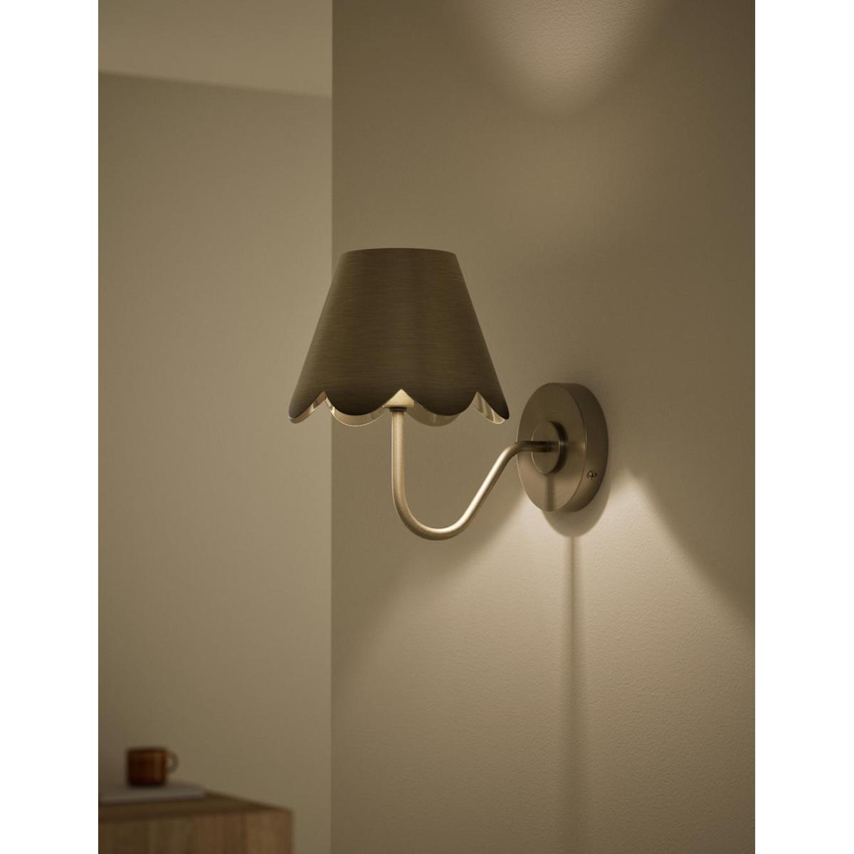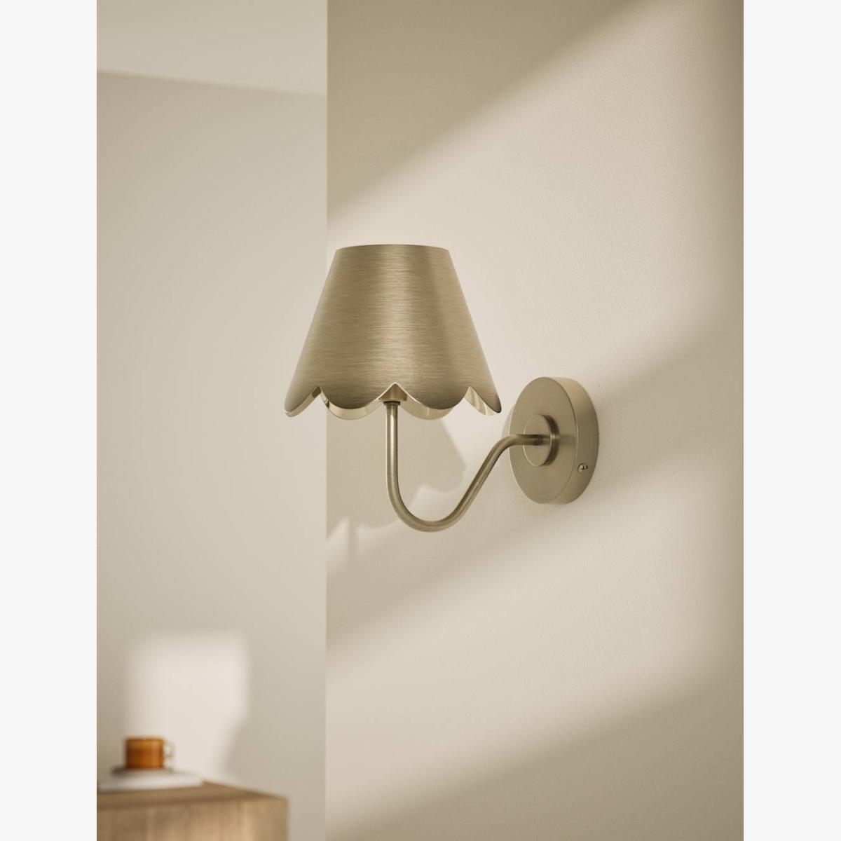 With its refined scalloped shape, this wall light is a timeless choice. Its sleek metal frame diffuses the brightness for a welcoming glow.