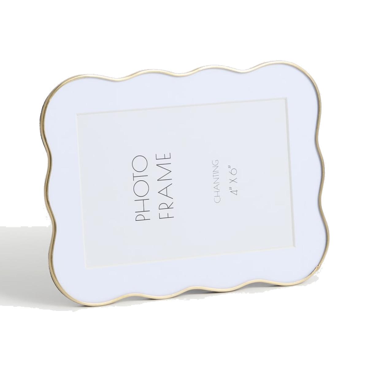 This stylish photo frame features an eye-catching wiggle design in a modern brass tone. It can be displayed in both landscape and portrait orientation and holds a 4x6 inch photo.