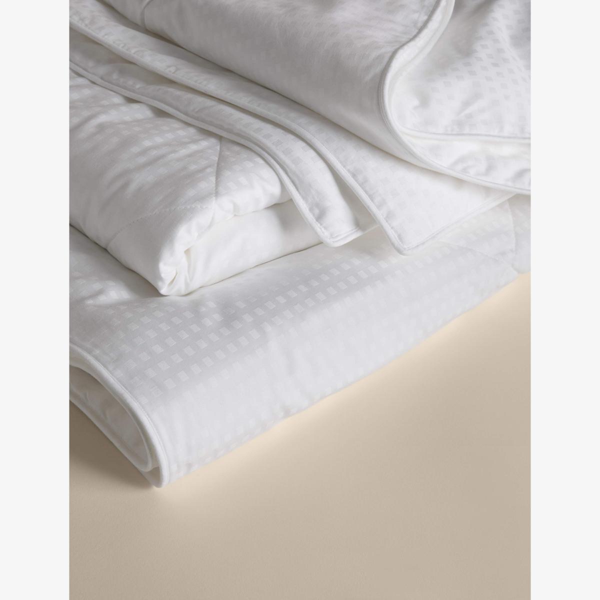 This duvet is filled with mulberry silk, prized for its sumptuous softness and natural temperature regulation. The six to seven tog weight makes it ideal for year-round use. A 300 thread count cotton cover adds a smooth, silky touch, while the diamond-stitched design ensures the silk filling stays evenly distributed for consistent comfort.