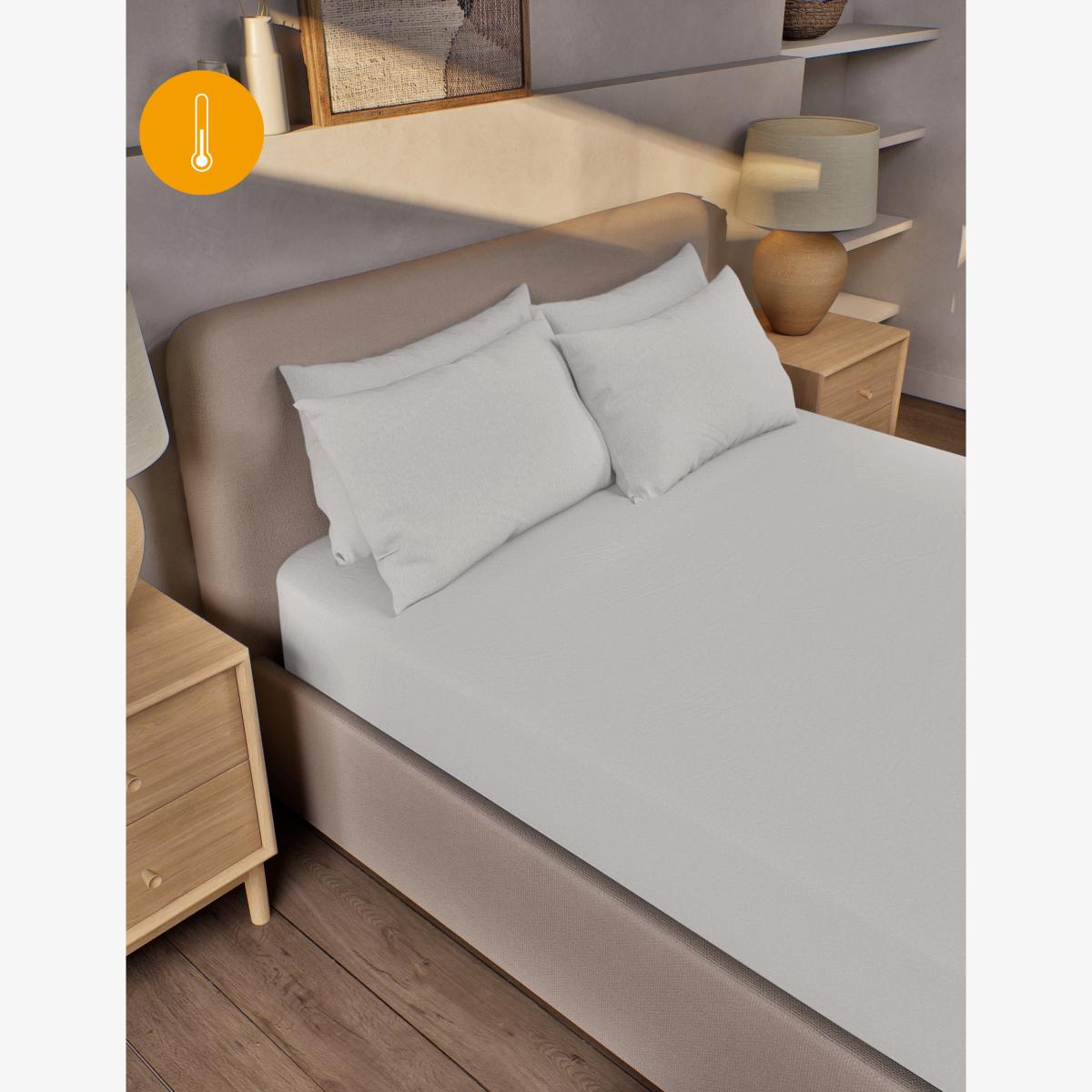 Make the most of a comfy mattress with our extra deep fitted sheet, designed to fit mattresses up to 38cm deep. Crafted from brushed pure cotton that feels soft against your skin, this clever thermal design works to protect against both heat loss and heat gain to help regulate your temperature. It has elasticated hems for quick and easy bed-making. Co-ordinating items are available. Light Warmth Heat Rating: Our Light Warmth rating is for cooler days and is perfect for in between seasons. This fabric is proven to show soft thermal performance helping to keep the chill away.