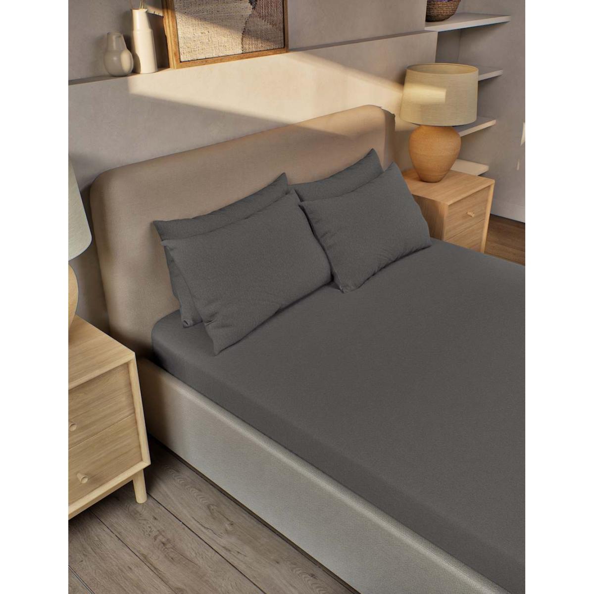 M&S Collection Pure Brushed Cotton Fitted Sheet - 6FT - Grey Marl, Camel,Dusty Green,White,Light Blue,Forest Green,Charcoal,Grey Marl,Silver Grey,Midnight Navy,Blush,Sand