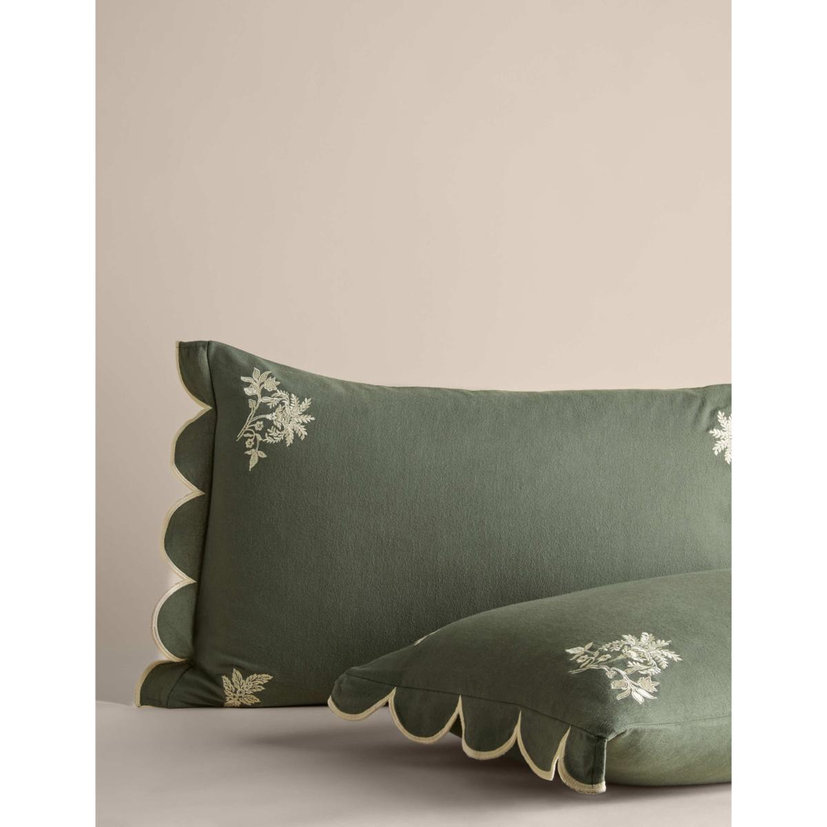 M&S Collection Pure Brushed Cotton Floral Embroidered Scallop Bedding Set - KING - Green, Green