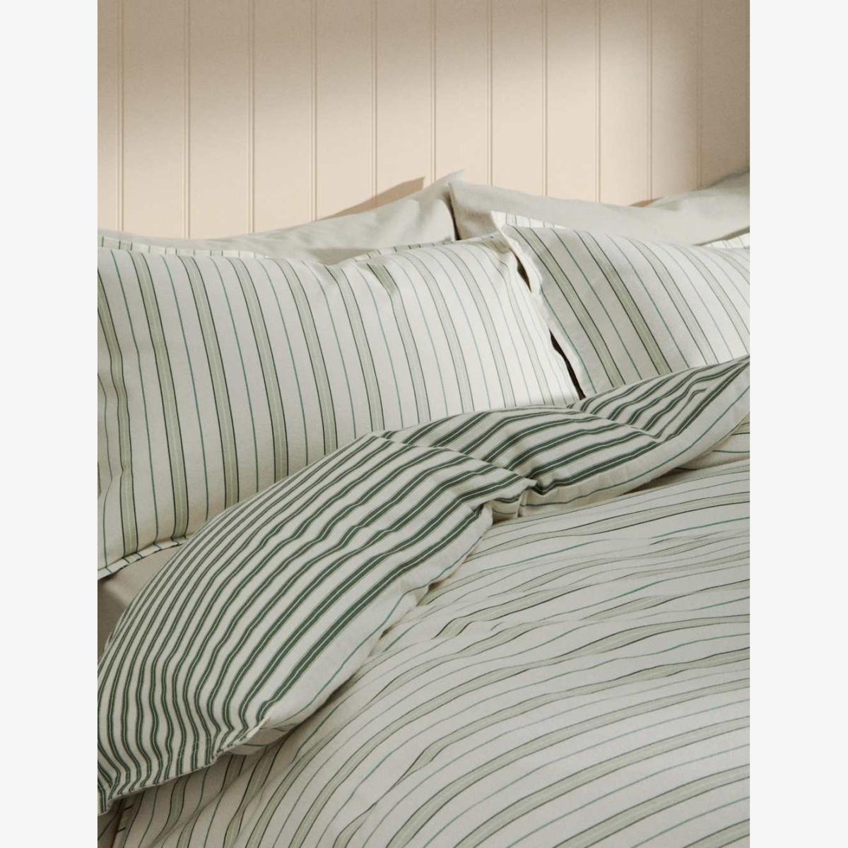 M&S Collection Pure Brushed Cotton Striped Bedding Set - KING - Green, Blue,Grey Mix,Rust Mix,Green