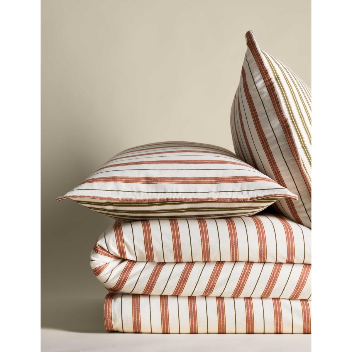 M&S Collection Pure Brushed Cotton Striped Bedding Set - SKING - Rust Mix, Grey Mix,Rust Mix