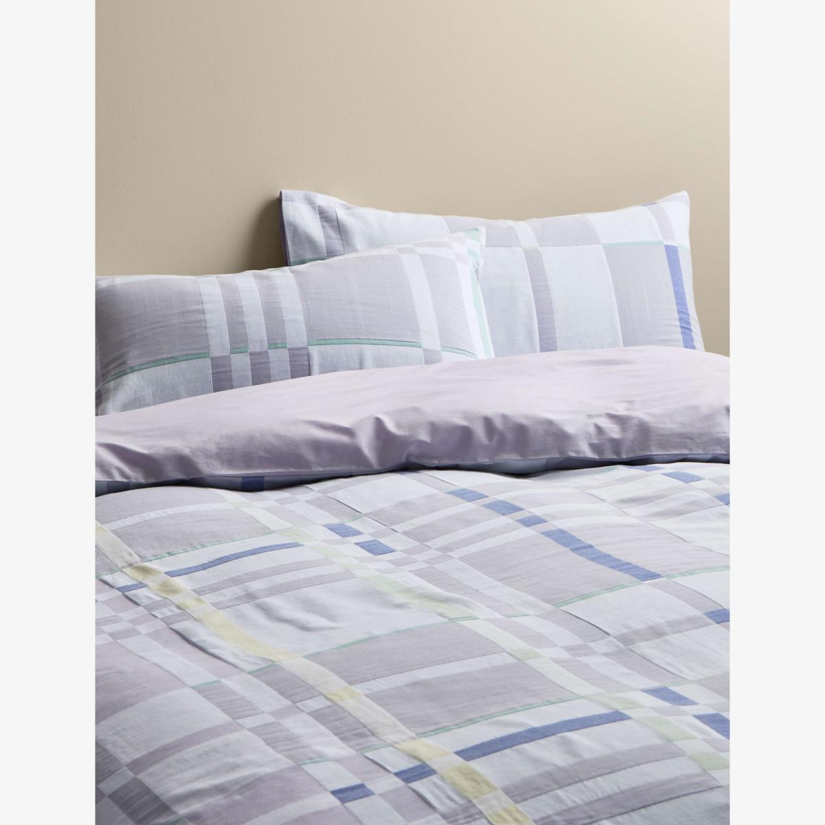 M&S Collection Pure Cotton Abstract Check Bedding Set - SKING - Lilac Mix, Lilac Mix