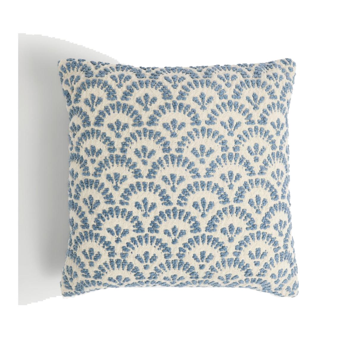 Add a stylish touch to your sofa with this gorgeously textured scatter cushion. This versatile, medium-sized square piece is made from pure cotton and has a tactile jacquard design of fan-shaped motifs.