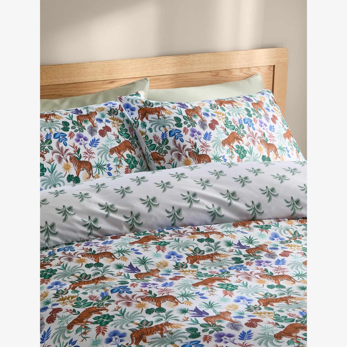 This bedding set features a playful print of tigers among colourful flowers and a ditsy pattern on the reverse for versatile styling. It's made from 300 thread count pure cotton with an easy-iron finish and StayNew™ technology to keep everything bright and soft. Finished with a button fastening.