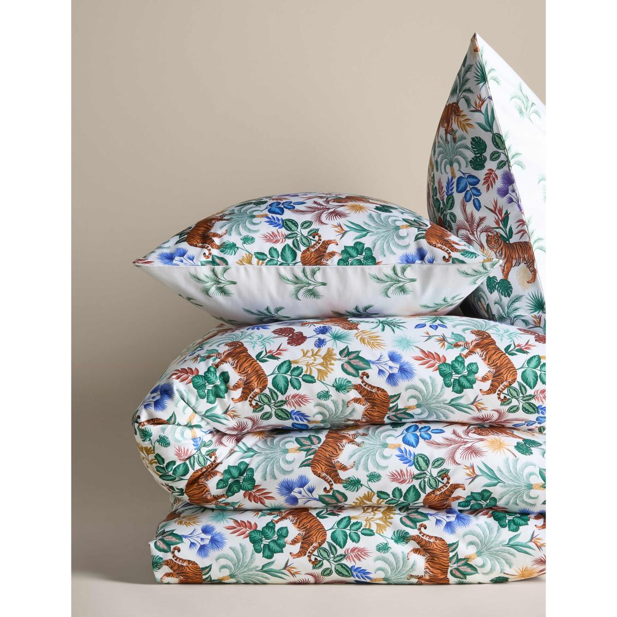 This bedding set features a playful print of tigers among colourful flowers and a ditsy pattern on the reverse for versatile styling. It's made from 300 thread count pure cotton with an easy-iron finish and StayNew™ technology to keep everything bright and soft. Finished with a button fastening.