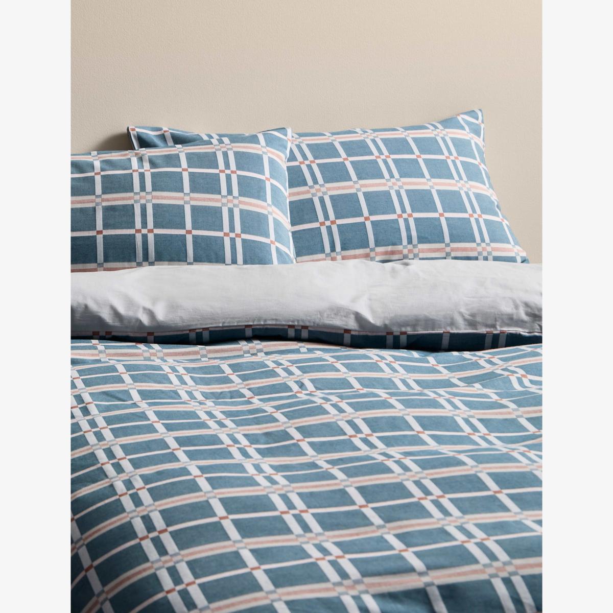 M&S Collection Pure Cotton Geo Checked Jacquard Bedding Set - KING - Blue Mix, Blue Mix