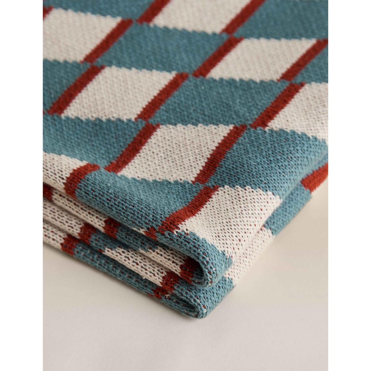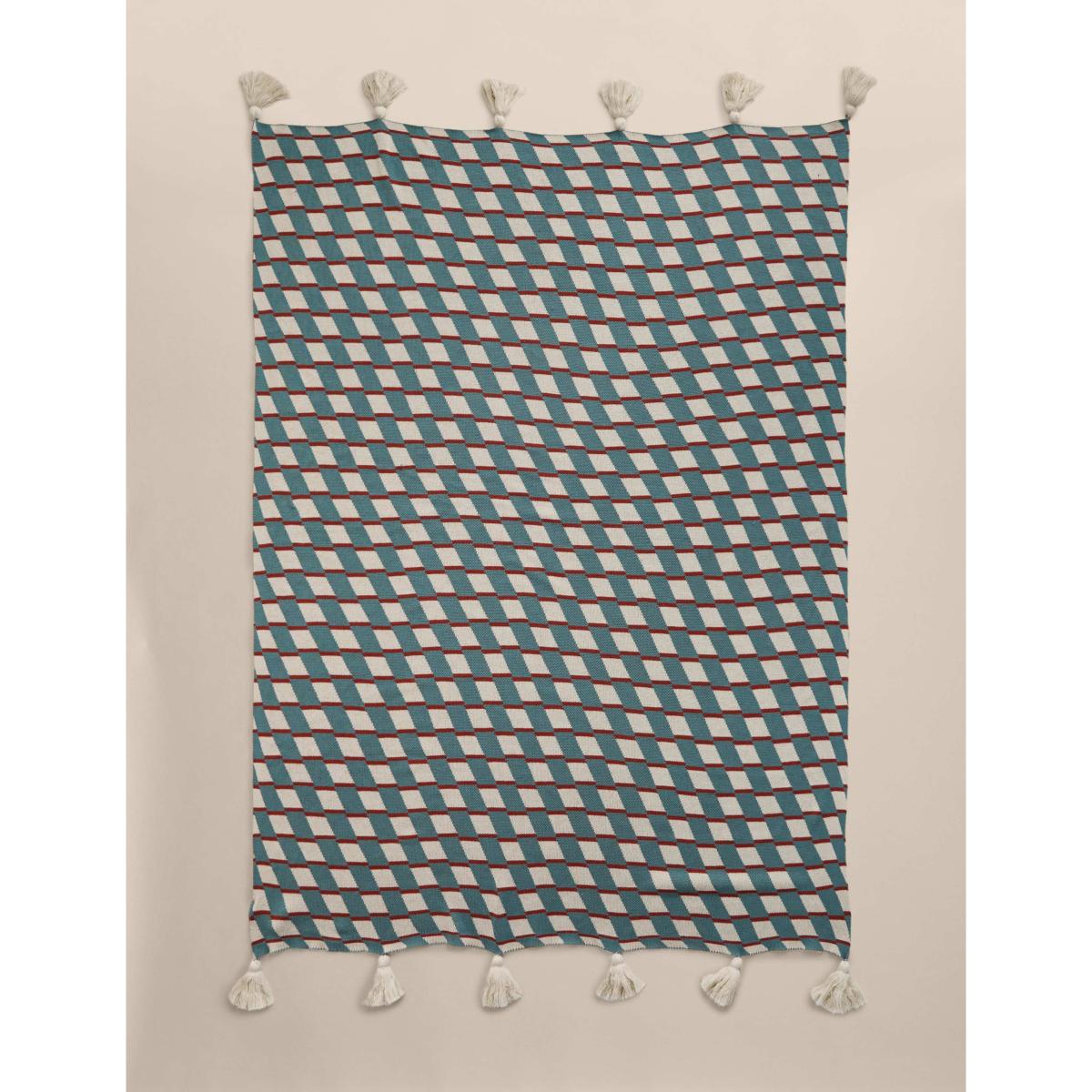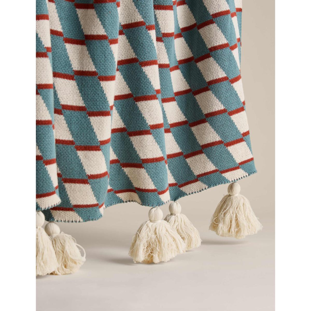 M&S Collection Pure Cotton Geometric Knitted Tassel Throw Teal Mix