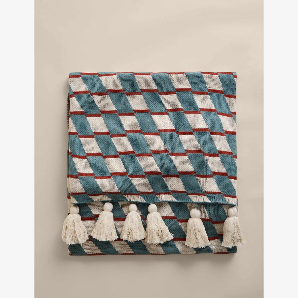 Bring extra luxury to your lounging with this large, knitted pure cotton throw. It features an eye-catching geometric pattern that will add a contemporary pop to any room, and is embellished with statement tassels at both ends.